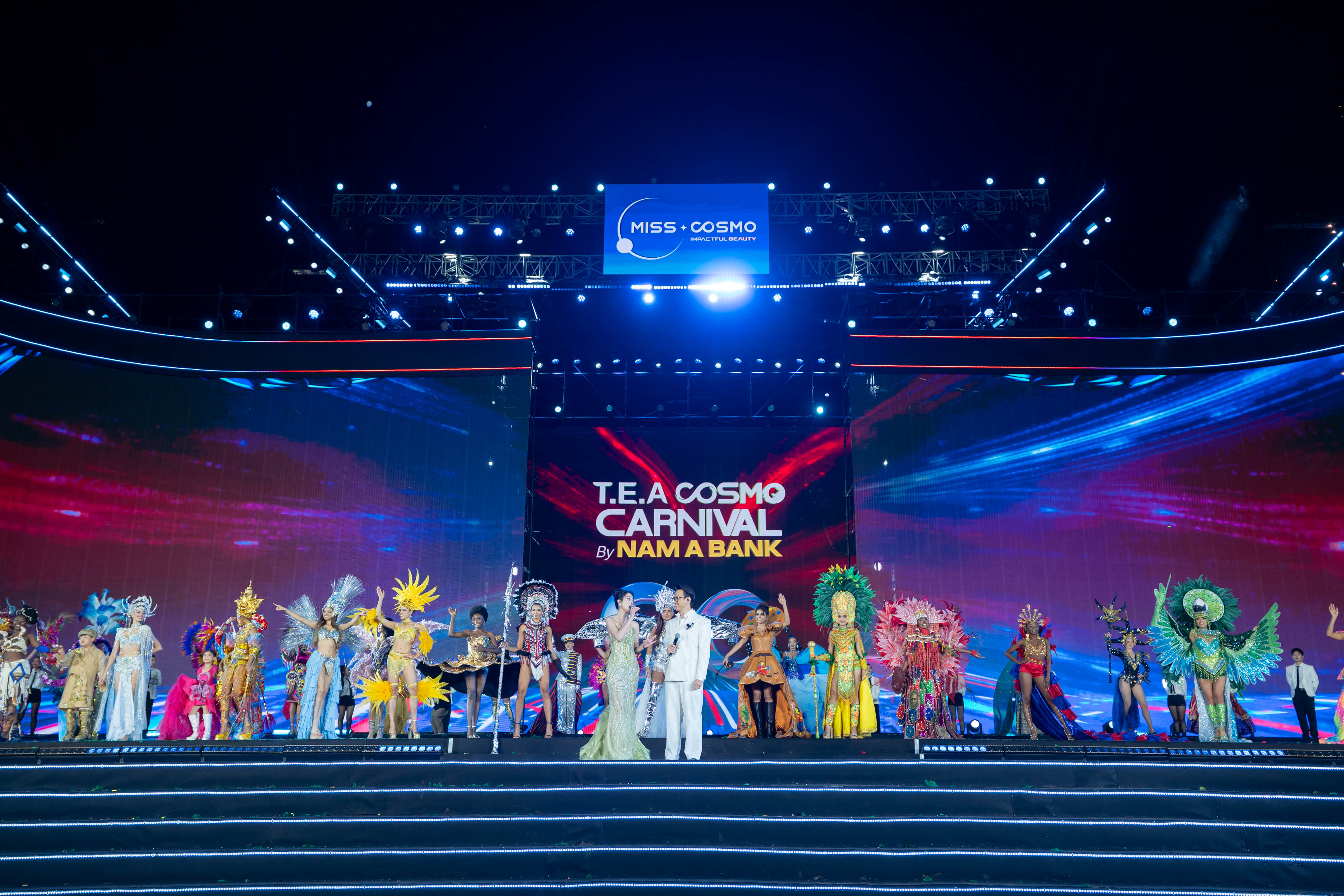 Các màn trình diễn của nghệ sĩ khách mời và gần 80 thí sinh Miss Cosmo quốc tế đã tạo nên không khí lễ hội sôi động.