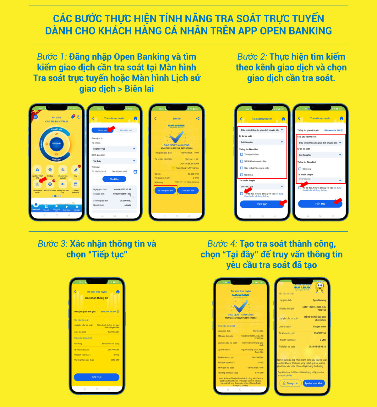 Khách hàng cá nhân có thể tạo yêu cầu điều chỉnh hoặc thu hồi hoặc kiểm tra tình trạng giao dịch chuyển tiền ngay trên Open Banking một cách dễ dàng và nhanh chóng.