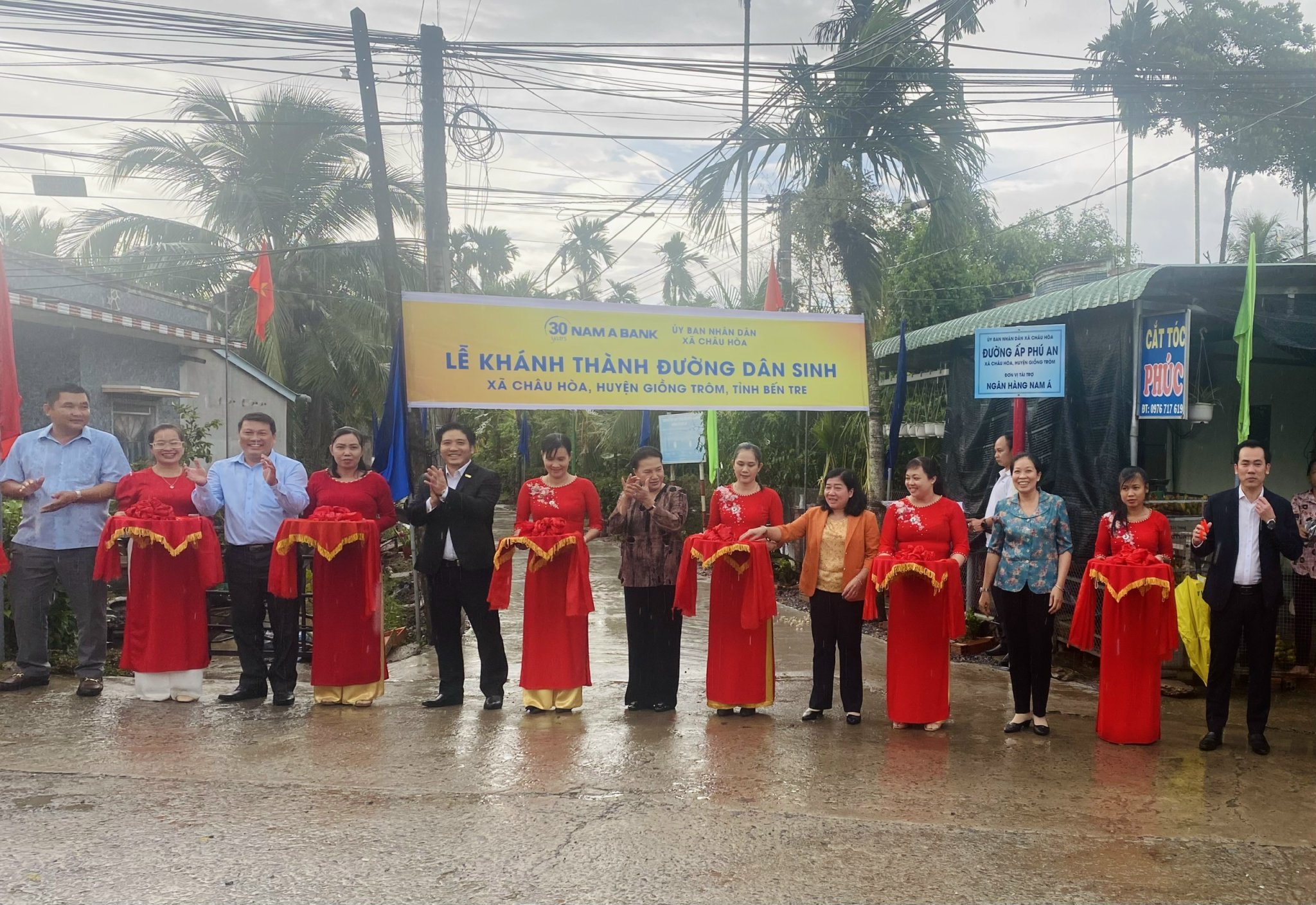 Theo đó, ngày 01/10, Nam A Bank khánh thành và bàn giao đường dân sinh tại tỉnh Bến Tre. Tham dự buổi lễ có bà Nguyễn Thị Kim Ngân - nguyên Chủ tịch Quốc hội, nguyên Ủy viên Bộ chính trị và đại diện chính quyền địa phương cùng nhân dân trong khu vực.