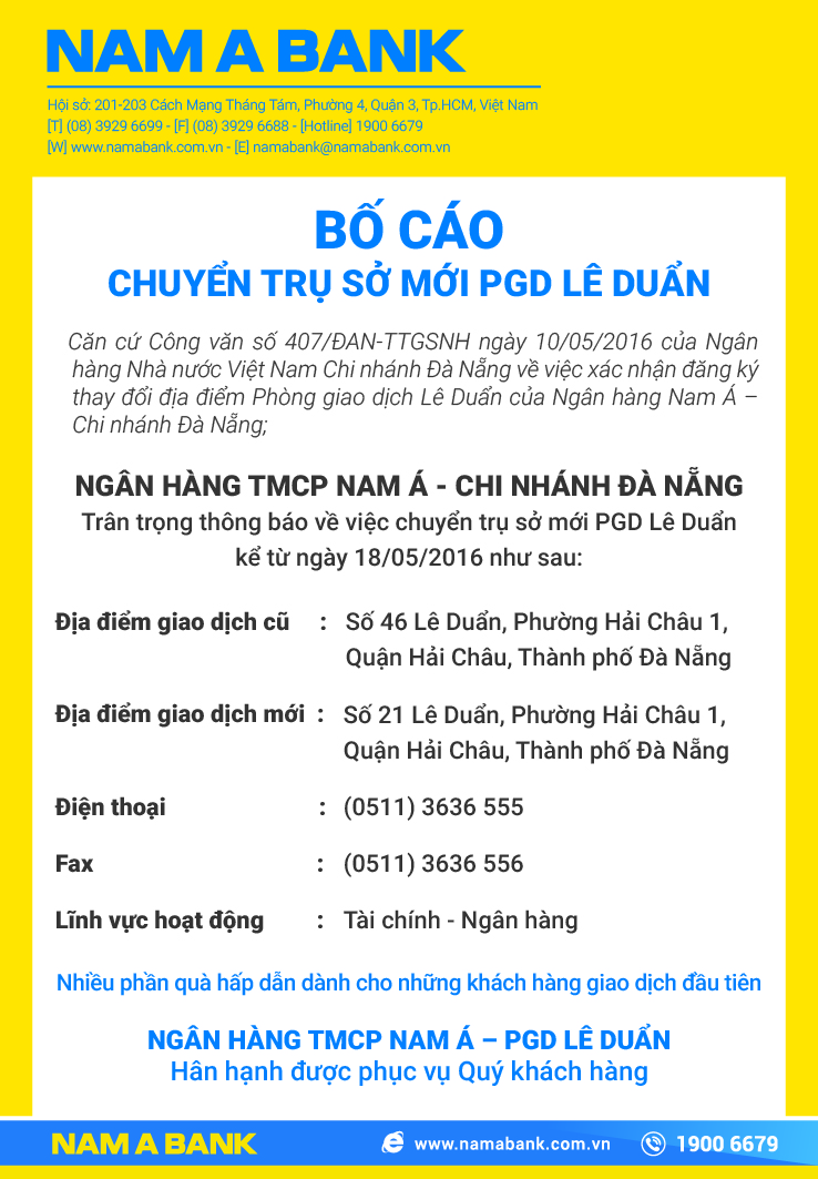 Bố cáo chuyển trụ sở mới PGD Lê Duẩn