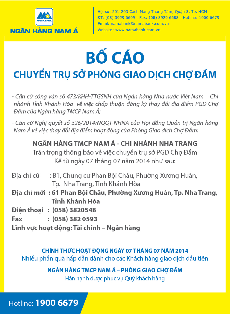 Bố cáo chuyển trụ sở PGD Chợ Đầm