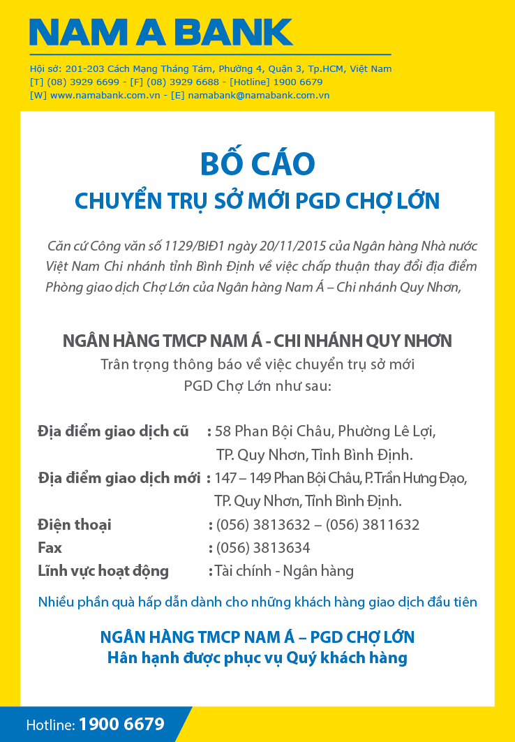 Bố cáo khai trương Nam A Bank Chợ Lớn