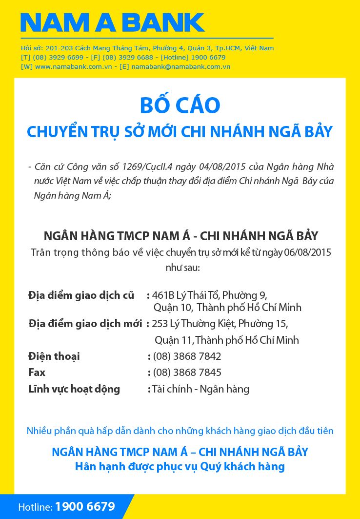 Bố cáo khai trương Nam A Bank Ngã Bảy