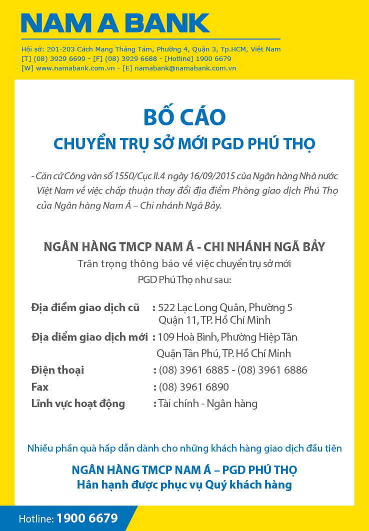 Bố cáo khai trương Nam A Bank Phú Thọ