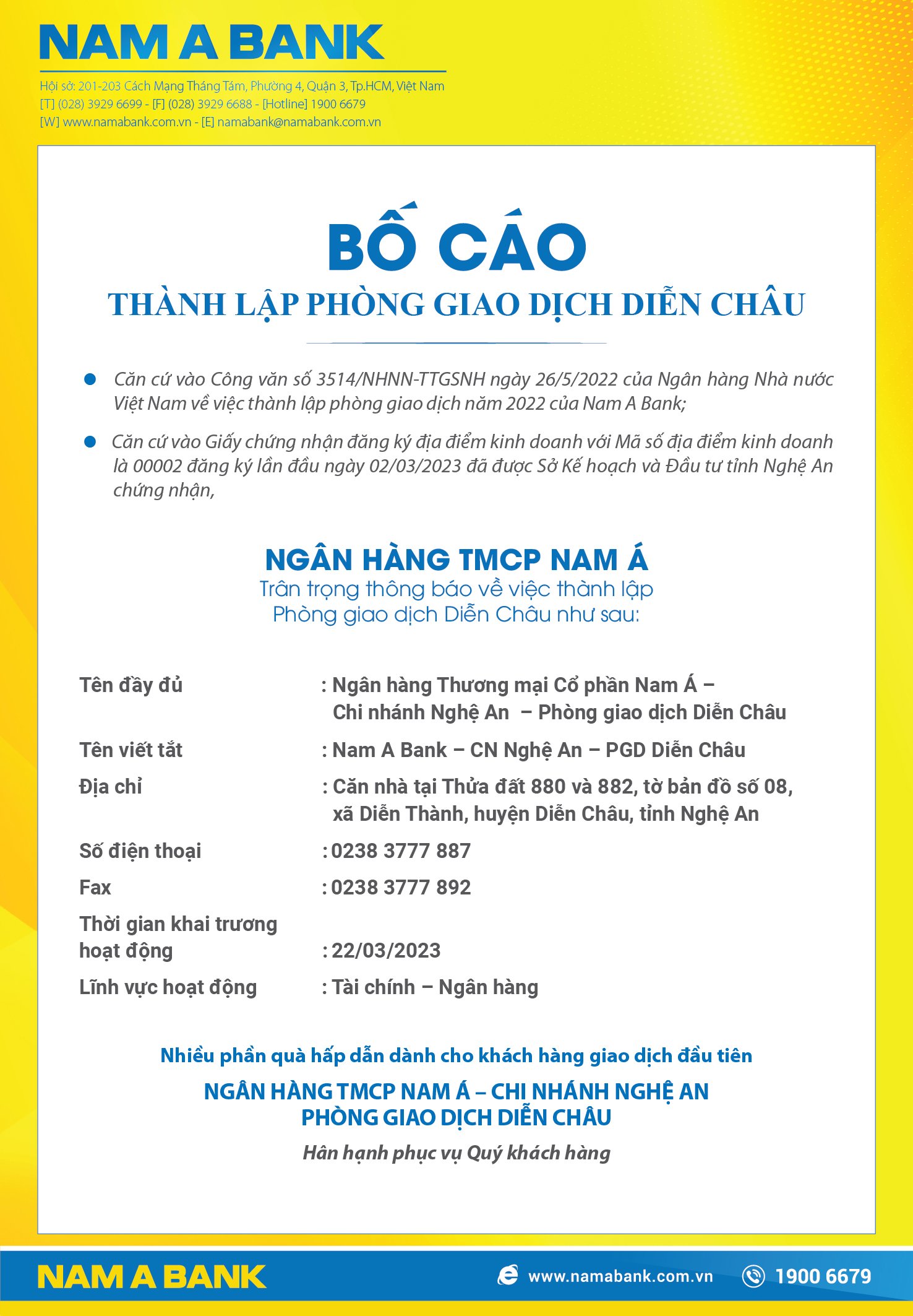 BỐ CAO KHAI TRƯƠNG PHÒNG GIAO DỊCH DIỄN CHÂU