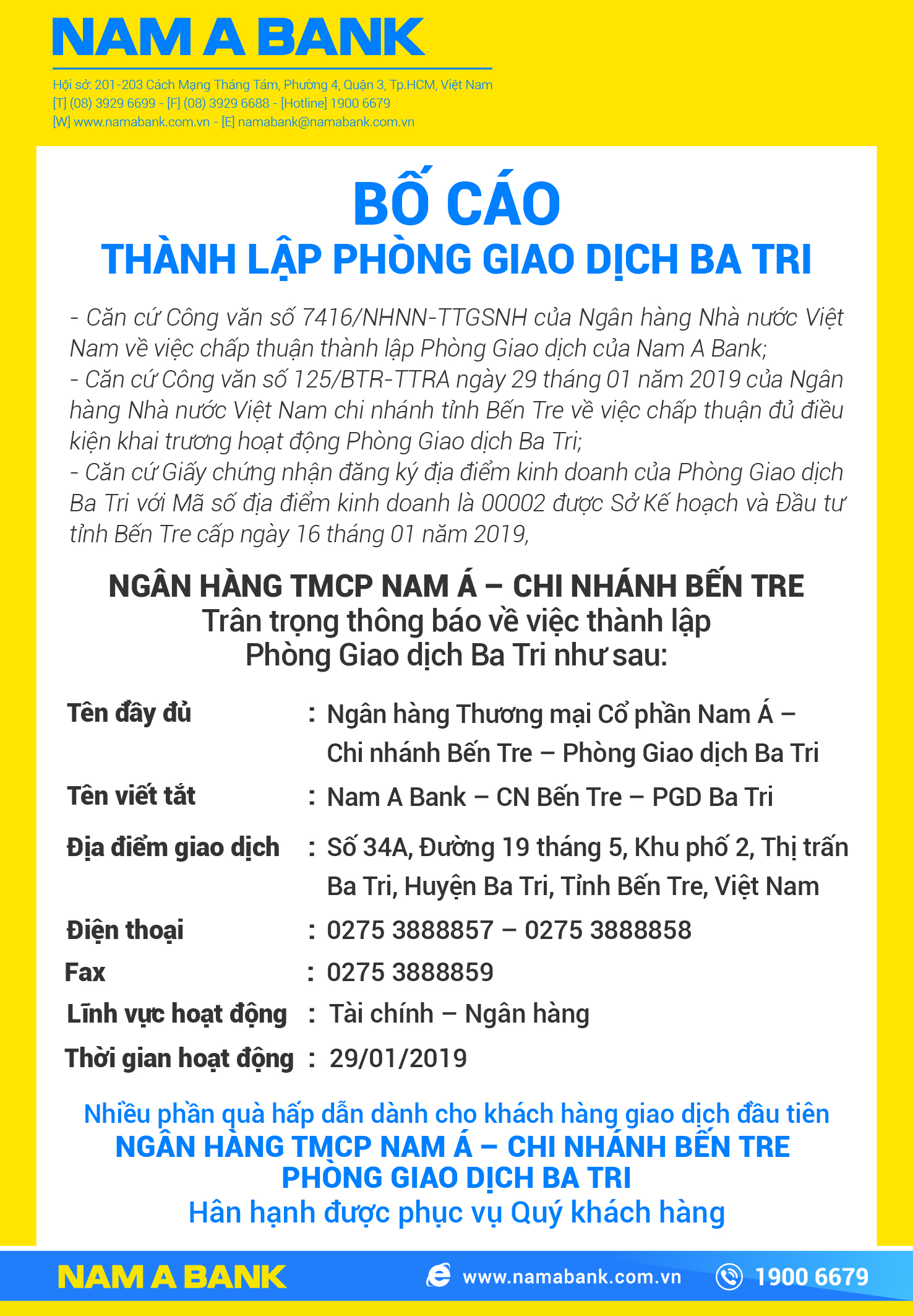 BỐ CÁO THÀNH LẬP PHÒNG GIAO DỊCH BA TRI