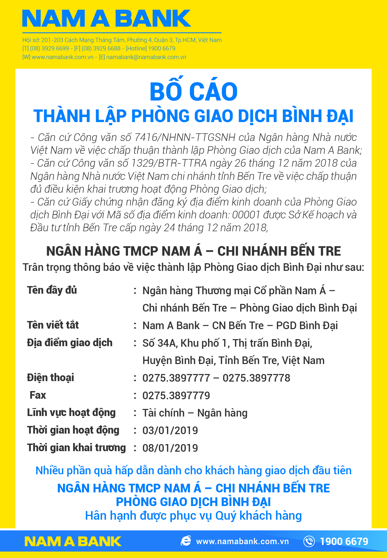 BỐ CÁO THÀNH LẬP PHÒNG GIAO DỊCH BÌNH ĐẠI