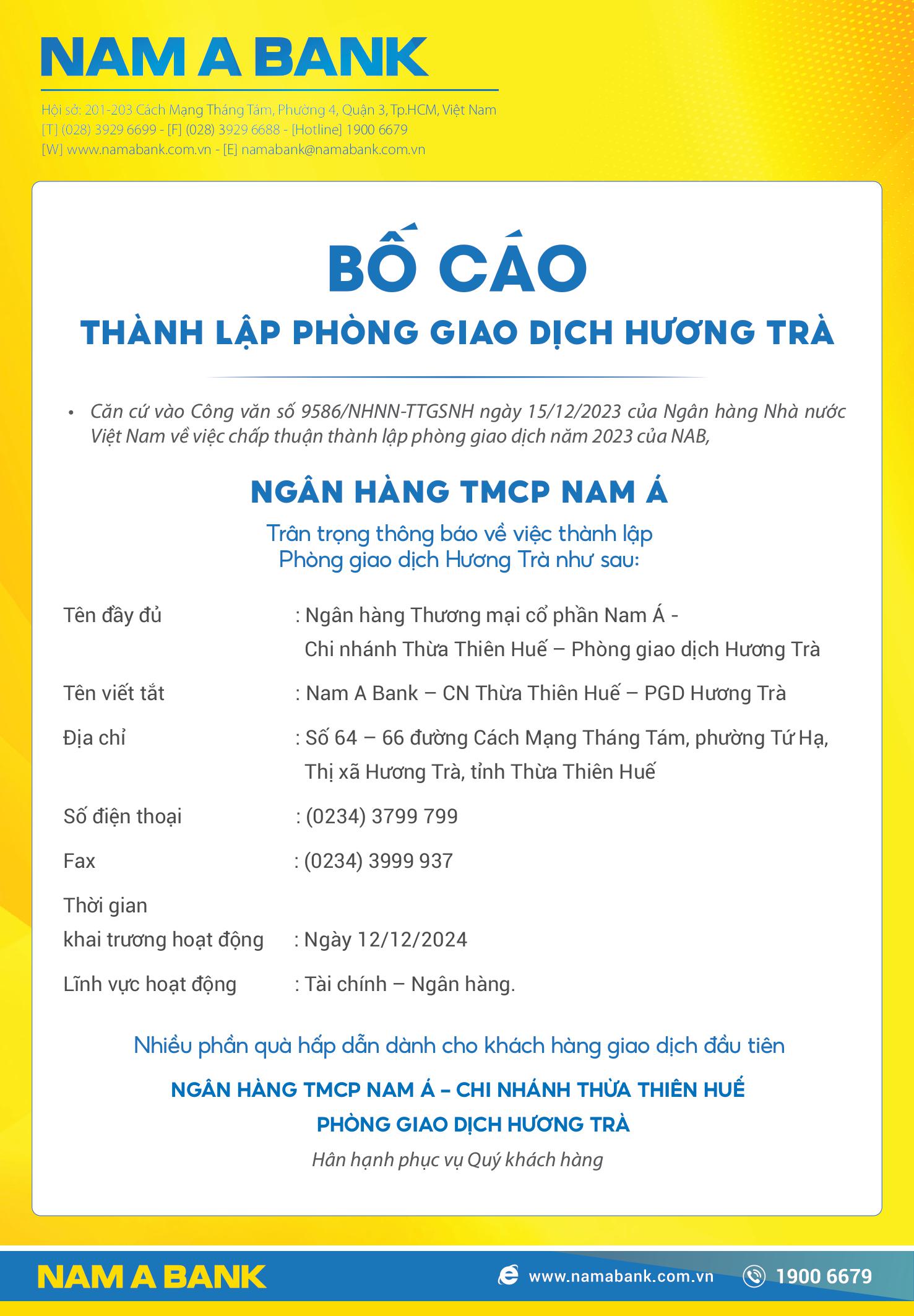 BỐ CÁO THÀNH LẬP PHÒNG GIAO DỊCH HƯƠNG TRÀ