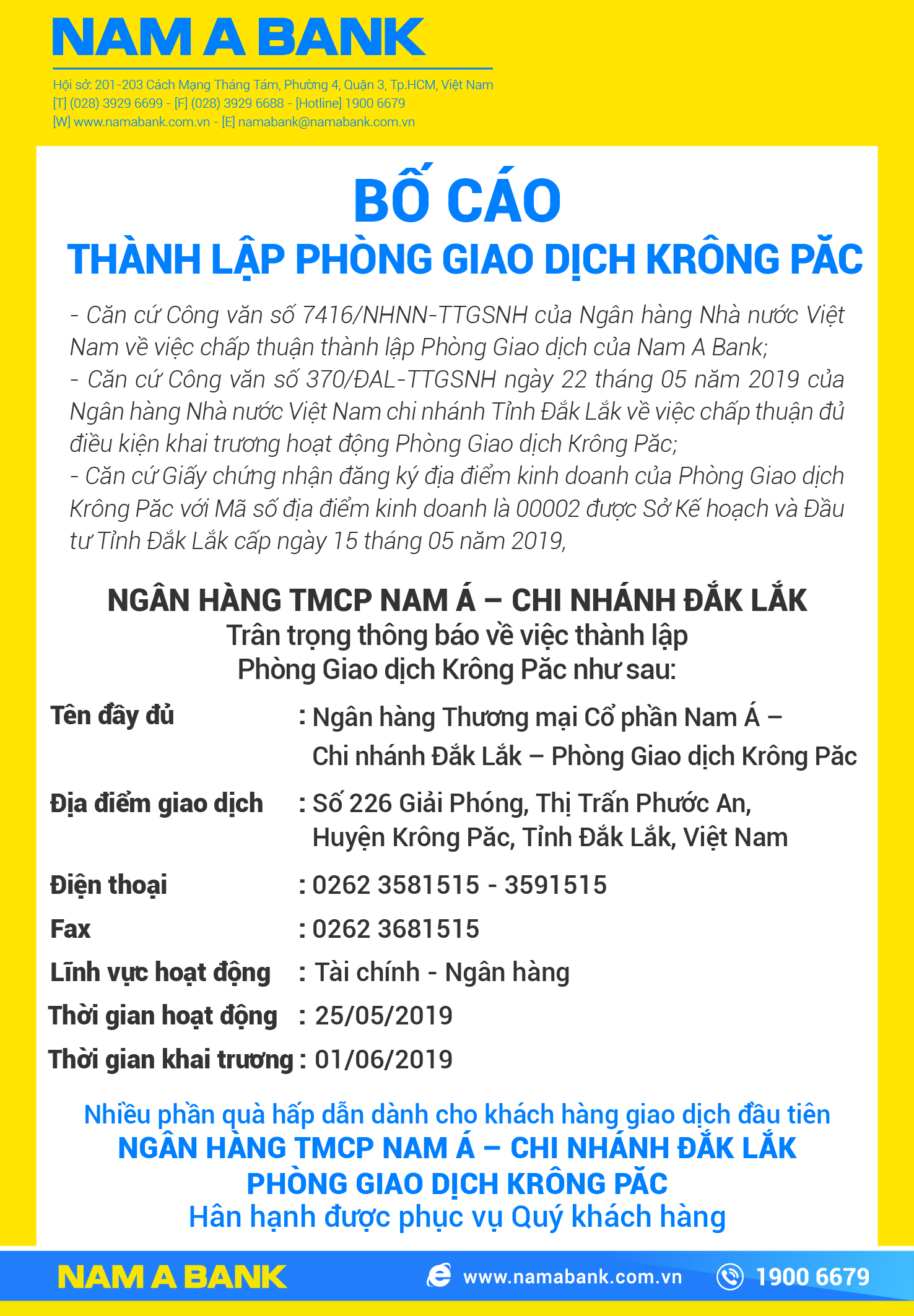 BỐ CÁO THÀNH LẬP PHÒNG GIAO DỊCH KRÔNG PĂC