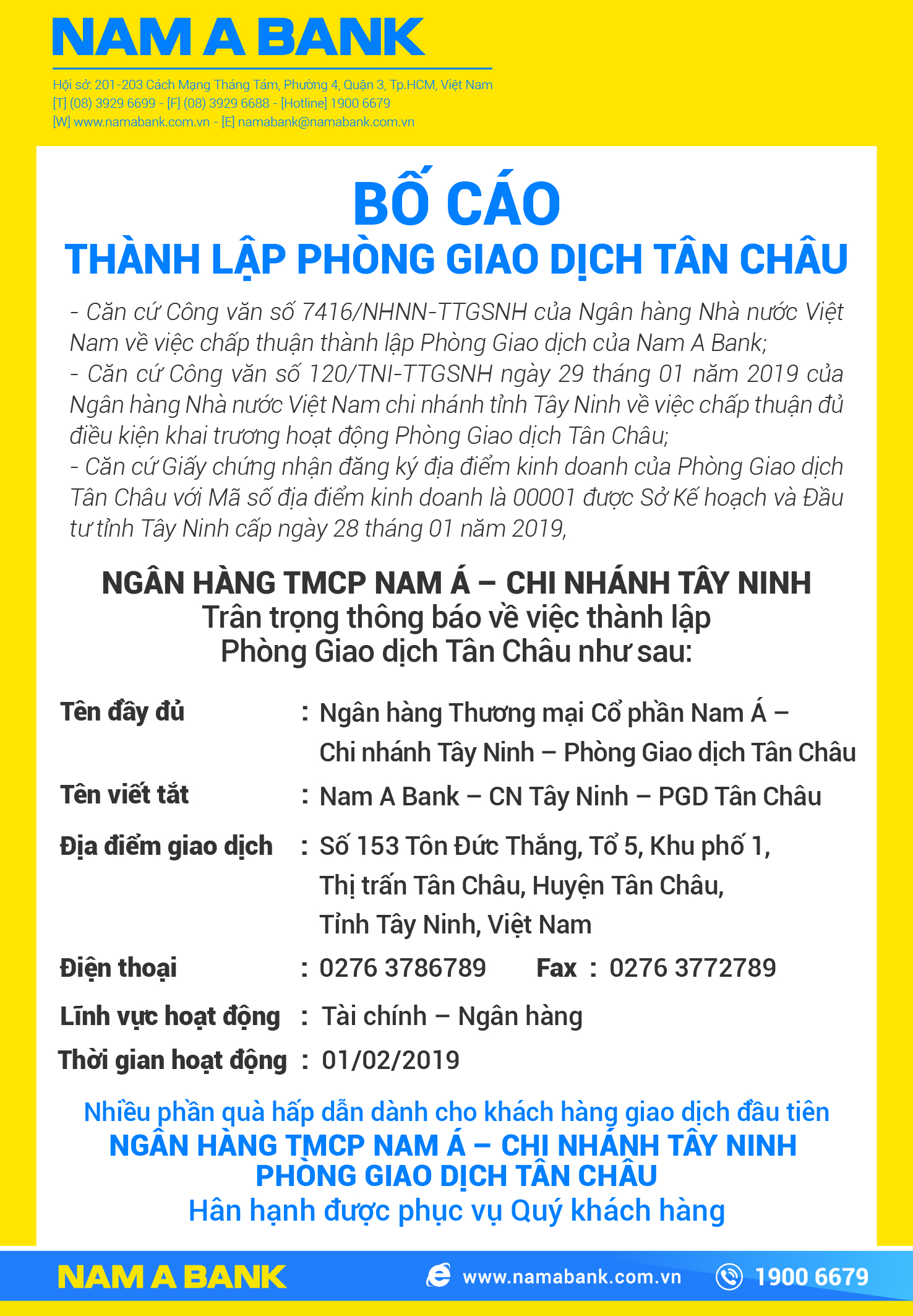 BỐ CÁO THÀNH LẬP PHÒNG GIAO DỊCH TÂN CHÂU