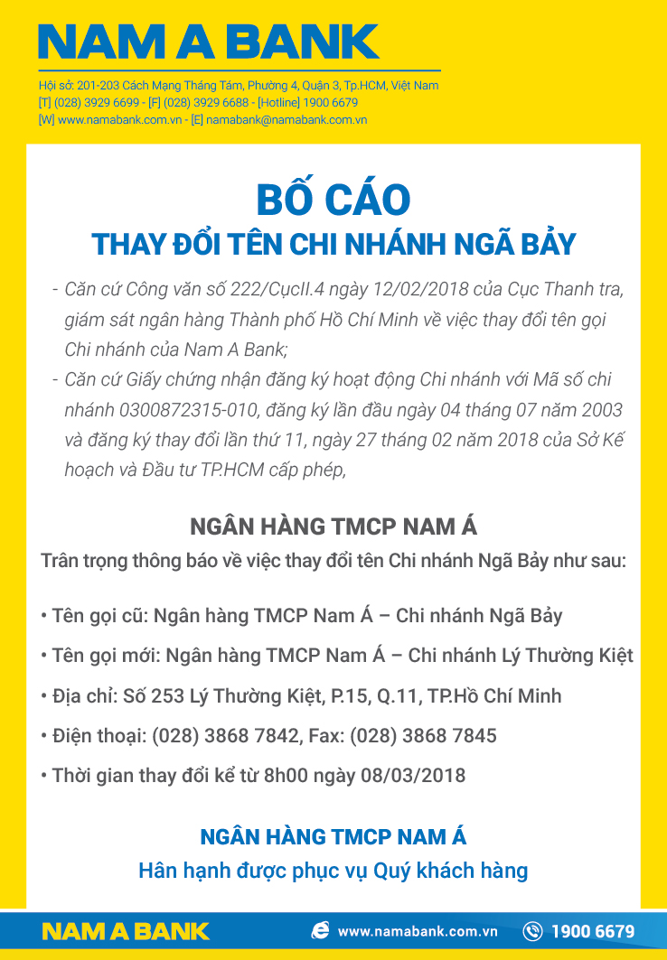 Bố cáo thay đổi tên chi nhánh Ngã Bảy.
