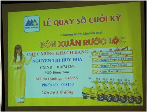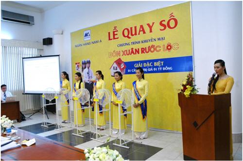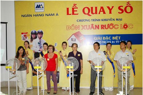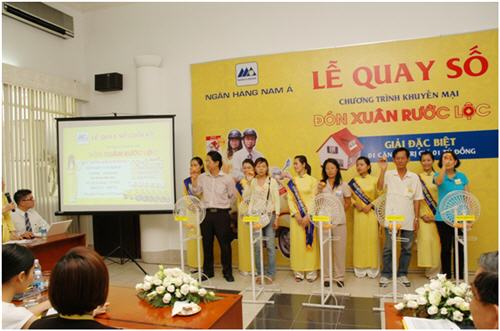 Hôm nay ngày 29/04/2011, tại Hội trường Saigon Times, số 35 Nam Kỳ Khởi Nghĩa, Phường Nguyễn Thái Bình, Quận 1,Tp.Hồ Chí Minh, Ngân hàng TMCP Nam Á đã tiến hành quay số Đợt 6 và Đợt cuối chương trình “ĐÓN XUÂN – RƯỚC LỘC”. Chương trình diễn ra công khai với sự chứng kiến của Đại diện Bộ công thương, Đại diện Uỷ Ban nhân dân Phường Nguyễn Thái Bình, Đại diện cơ quan báo đài và đặc biệt có sự tham dự của hơn 60 khách hàng thân thiết của NAM A BANK.
