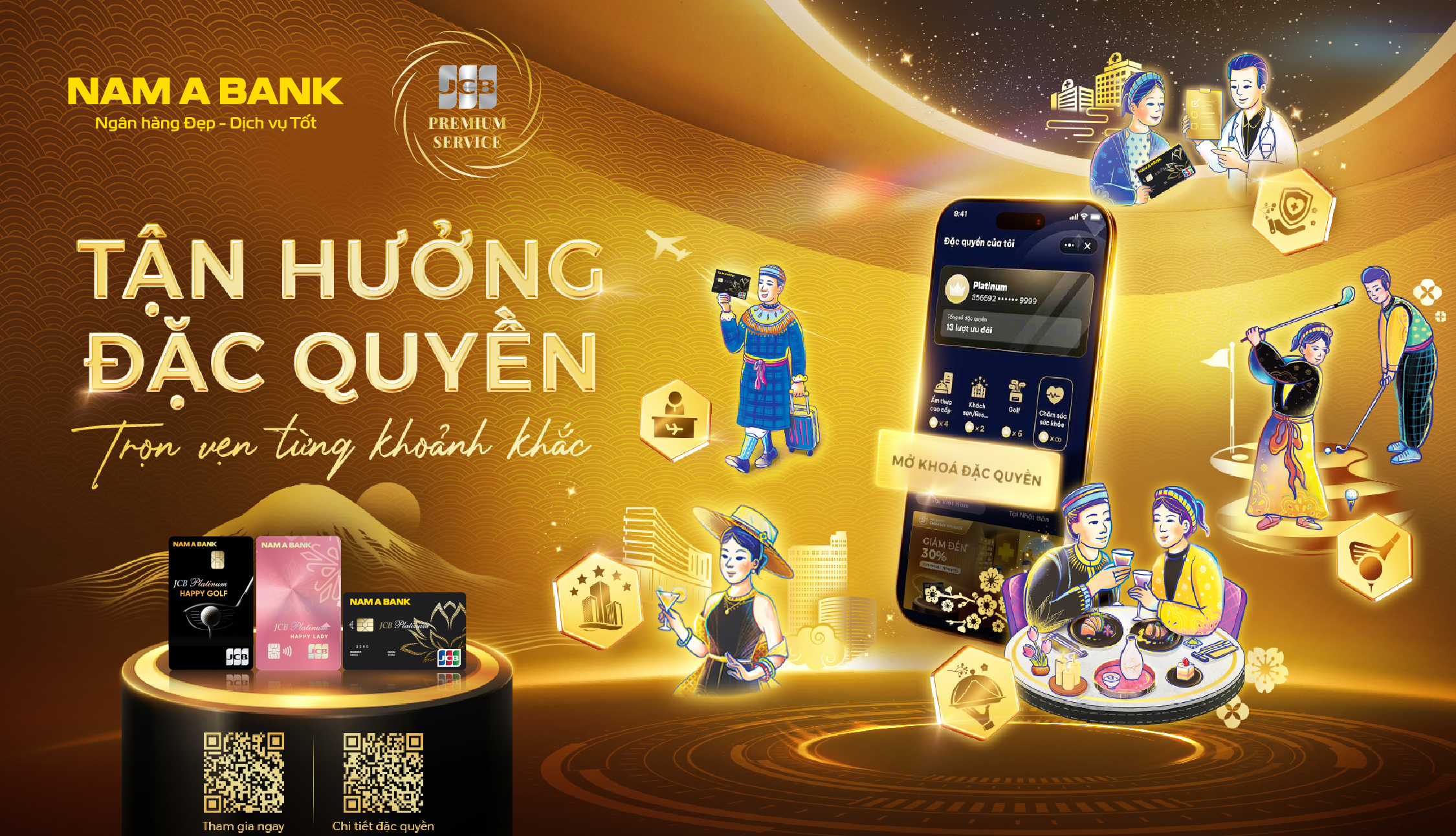 - Loại thẻ áp dụng: JCB Platinum, JCB Happy Lady, và JCB Happy Golf.