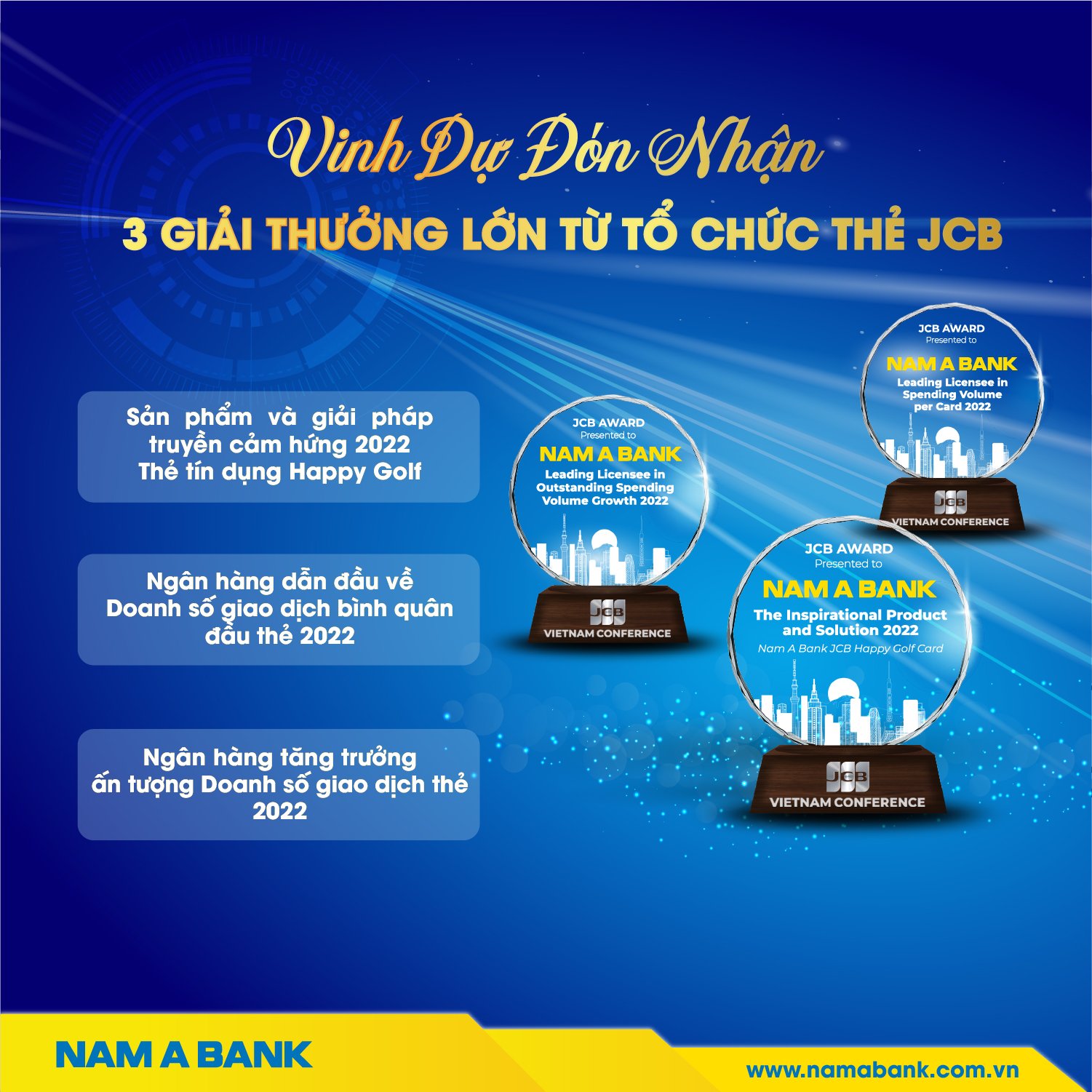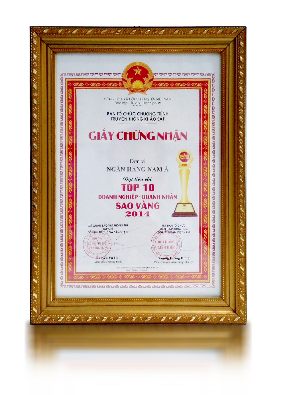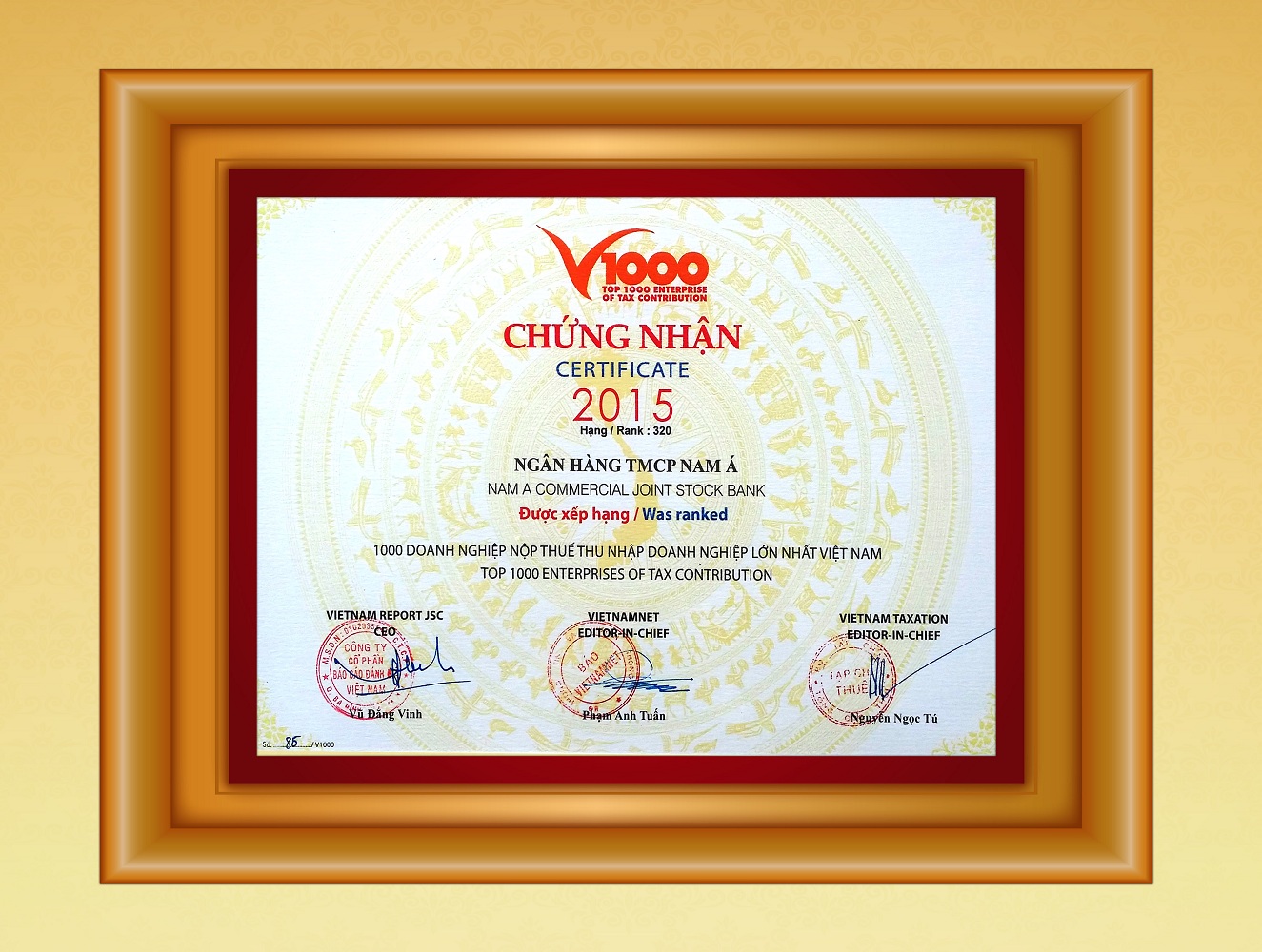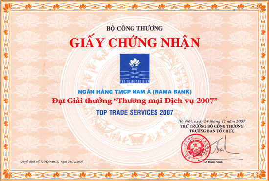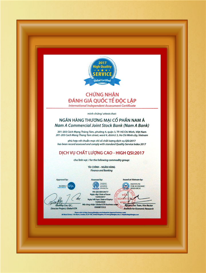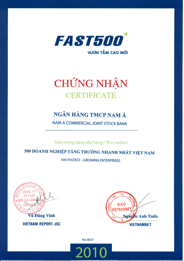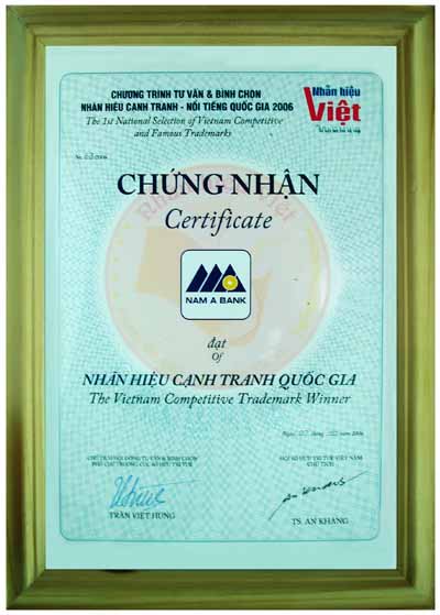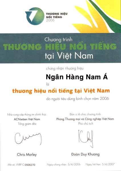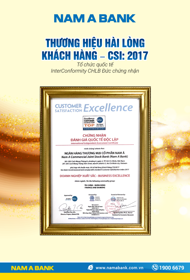 Bằng khen: Chủ tịch UBND thành phố Hồ Chí Minh trao tặng "Ngân hàng TMCP Nam Á đã có thành tích xuất sắc nhiệm vụ liên tục nhiều năm góp phần tích cực phong trào thi đua của thành phố"