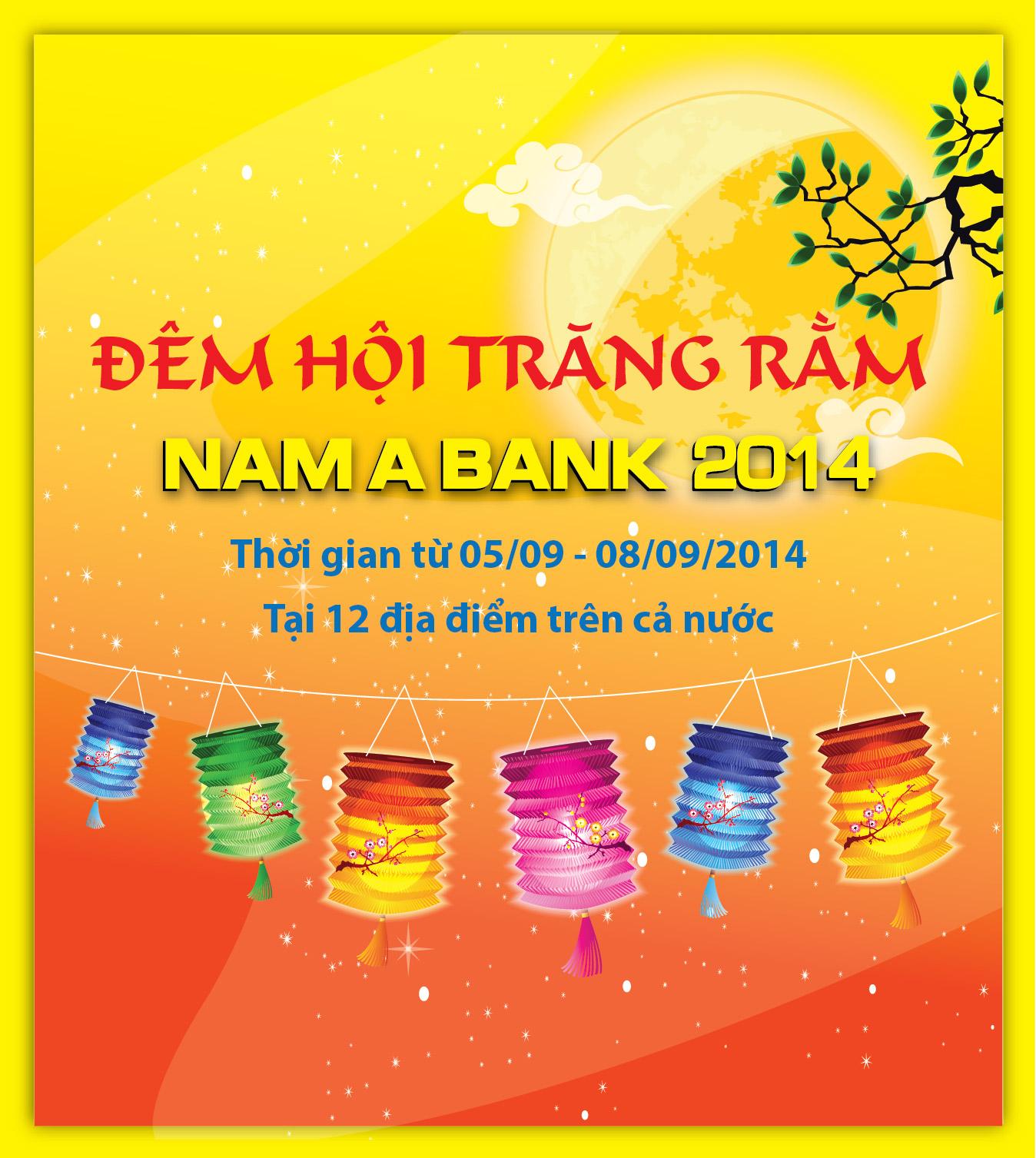 Với mong muốn mang lại cho các em thiếu nhi một Trung thu vui vẻ và ấm áp, từ ngày 03/09/2014 – 08/09/2014, Nam A Bank phối hợp với chính quyền địa phương tổ chức chương trình “Đêm hội trăng rằm Nam A Bank 2014” tại 12 Đơn vị kinh doanh của Nam A Bank trên cả nước.