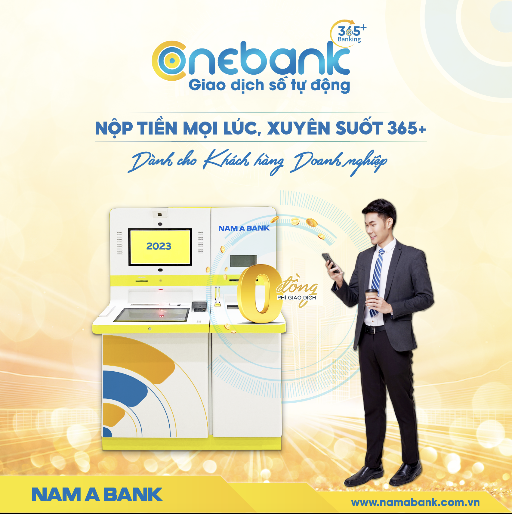 Ngày nay, Khách hàng doanh nghiệp đã có thể chủ động nộp tiền mặt vào tài khoản kể cả khác chủ tài khoản NAM A BANK tại máy VTM của Giao dịch số tự động ONEBANK.
