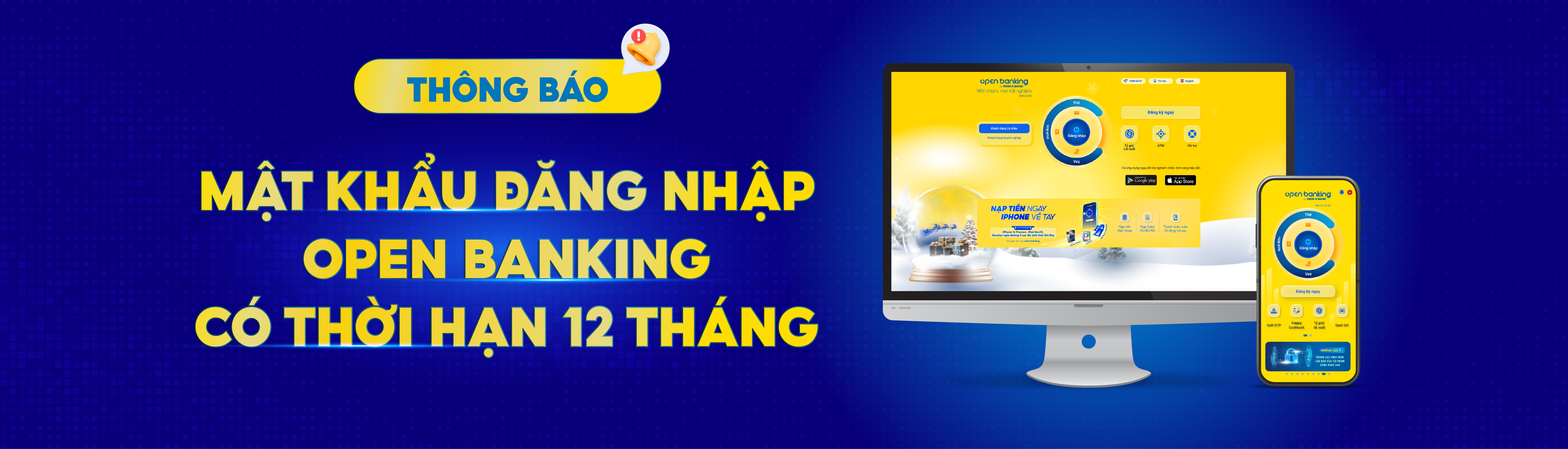 Nhằm đáp ứng tuân thủ Thông tư 50/2024/TT-NHNN v.v Quy định về an toàn, bảo mật cho việc cung cấp dịch vụ trực tuyến trong ngành Ngân hàng, Nam A Bank kính thông tin đến Quý khách hàng về việc áp dụng thời hạn 12 tháng cho mật khẩu đăng nhập Open Banking.