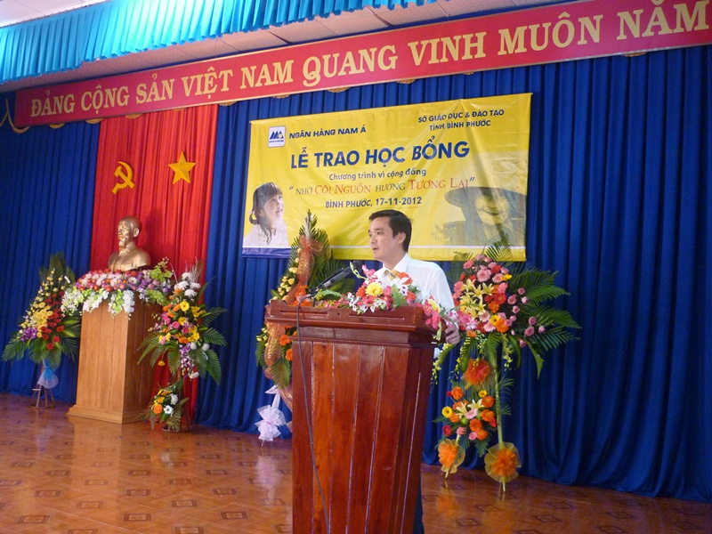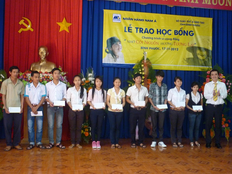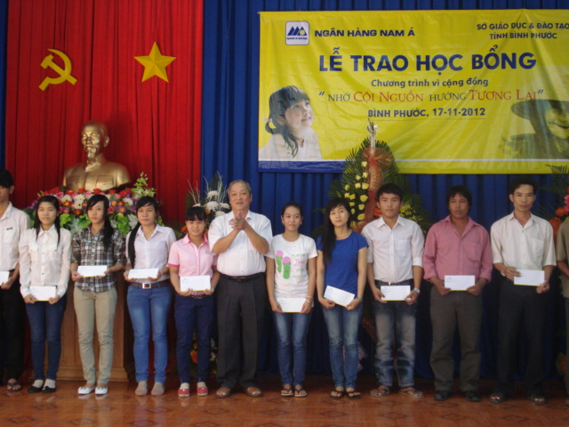 Tiếp tục hành trình “Nhớ cội nguồn – Hướng tương lai”, ngày 17/11/2012, Ngân hàng TMCP Nam Á (NAM A BANK) phối hợp với Sở Giáo dục và Đào tạo tỉnh Bình Phước, đã trao 50 suất học bổng cho các em học sinh nghèo, vượt khó học giỏi thi đậu vào các trường Đại học, Cao đẳng năm 2012 của Tỉnh Bình Phước.