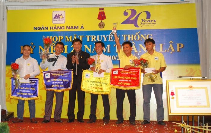 Trong không khí tưng bừng chào đón sinh nhật lần thứ 20 của Ngân hàng TMCP Nam Á (NAM A BANK), ngày 20/10/2012 tại Nhà hàng Sinh Đôi, tập thể Ban Lãnh Đạo và CBNV ngân hàng đã tổ chức buổi họp mặt truyền thống chào mừng NAM A BANK tròn 20 tuổi, buổi lễ được tổ chức trong không khí ấm cúng và thân mật để toàn thể cán bộ nhân viên ngân hàng có dịp nhìn lại chặng đường đã qua nhằm thắt chặt hơn tình đoàn kết, nỗ lực trong hoạt động của mình góp phần xây dựng mái nhà Ngân hàng Nam Á ngày càng phát triển bền vững.