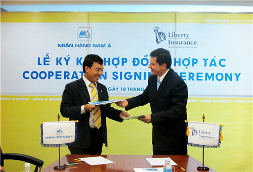 Vào hồi 9h00 ngày 18/10/2011, Tại Hội sở chính Ngân hàng Nam Á, 201-203 CMT8, Quận 3, Tp. HCM . Lễ ký kết hợp đồng hợp tác giữa Ngân Hàng Nam Á và công ty TNHH Bảo Hiểm Liberty về sản phẩm bảo hiểm Ô tô đã chính thức diễn ra.