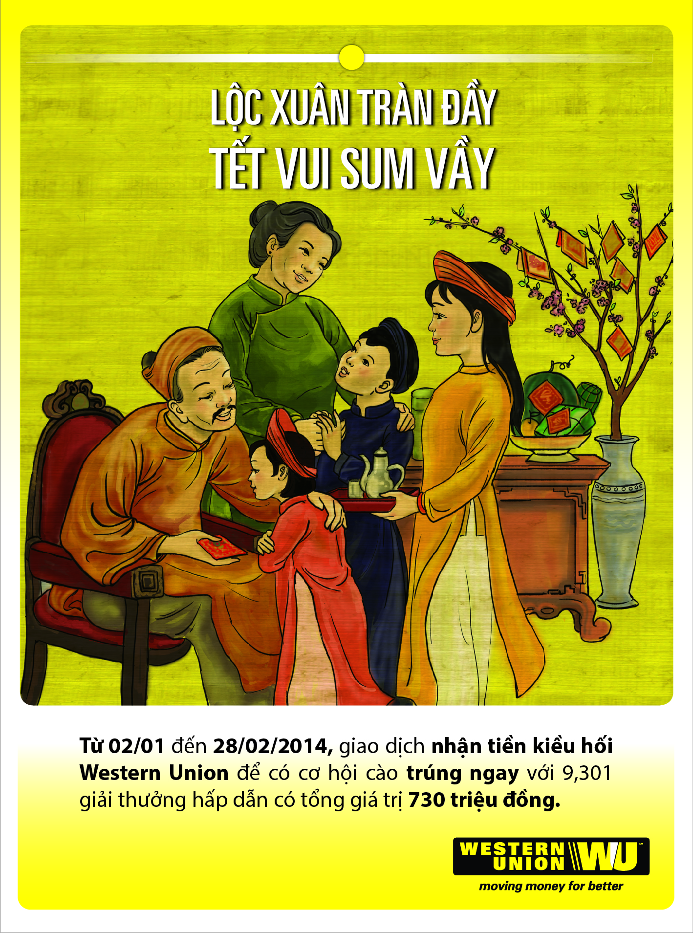 Nhân dịp Xuân Giáp Ngọ 2014, Nhằm mang đến những món quà Tết ý nghĩa cho khách hàng, Ngân hàng Nam Á (NAM A BANK) triển khai chương trình “Lộc Xuân tràn đầy – Tết vui sum vầy”, chương trình áp dụng cho khách hàng cá nhân thực hiện giao dịch nhận tiền hoặc gửi tiền qua hệ thống Western Union. Chương trình kéo dài từ ngày 02/01 – 28/02/2014 với hàng ngàn giải thưởng hấp dẫn.