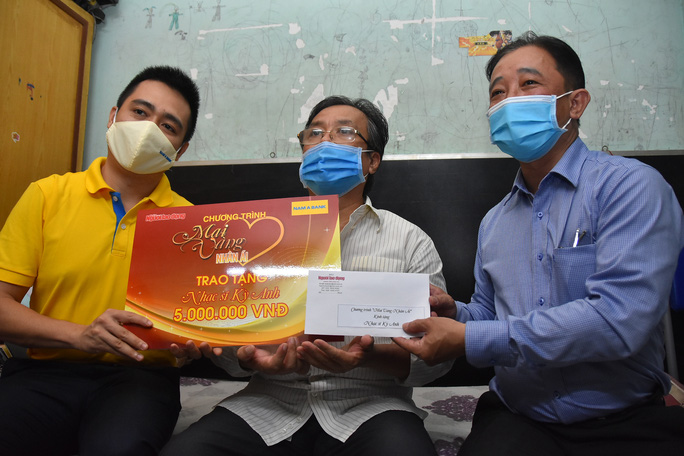 Đón nhận số tiền hỗ trợ của chương trình "Mai Vàng nhân ái", nhạc sĩ Kỳ Anh nói: "Tôi cảm kích vô cùng khi nhận được sự quan tâm của Báo Người Lao Động và Nam Á Bank. Kỷ niệm lắm khi đoàn đã đến tận nhà để thăm tôi. Cảm ơn chương trình "Mai Vàng nhân ái" đã mang món quà này đến với tôi, nguồn động lực lớn để tôi tiếp tục điều trị bệnh của mình".