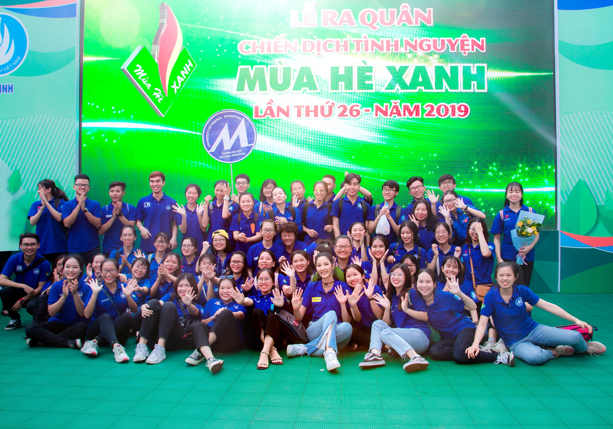Đại sứ vì môi trường của Nam A Bank Á hậu Hoàng Thùy cùng các tình nguyện viên tại Lễ ra quân chiến dịch Mùa hè xanh 2019.