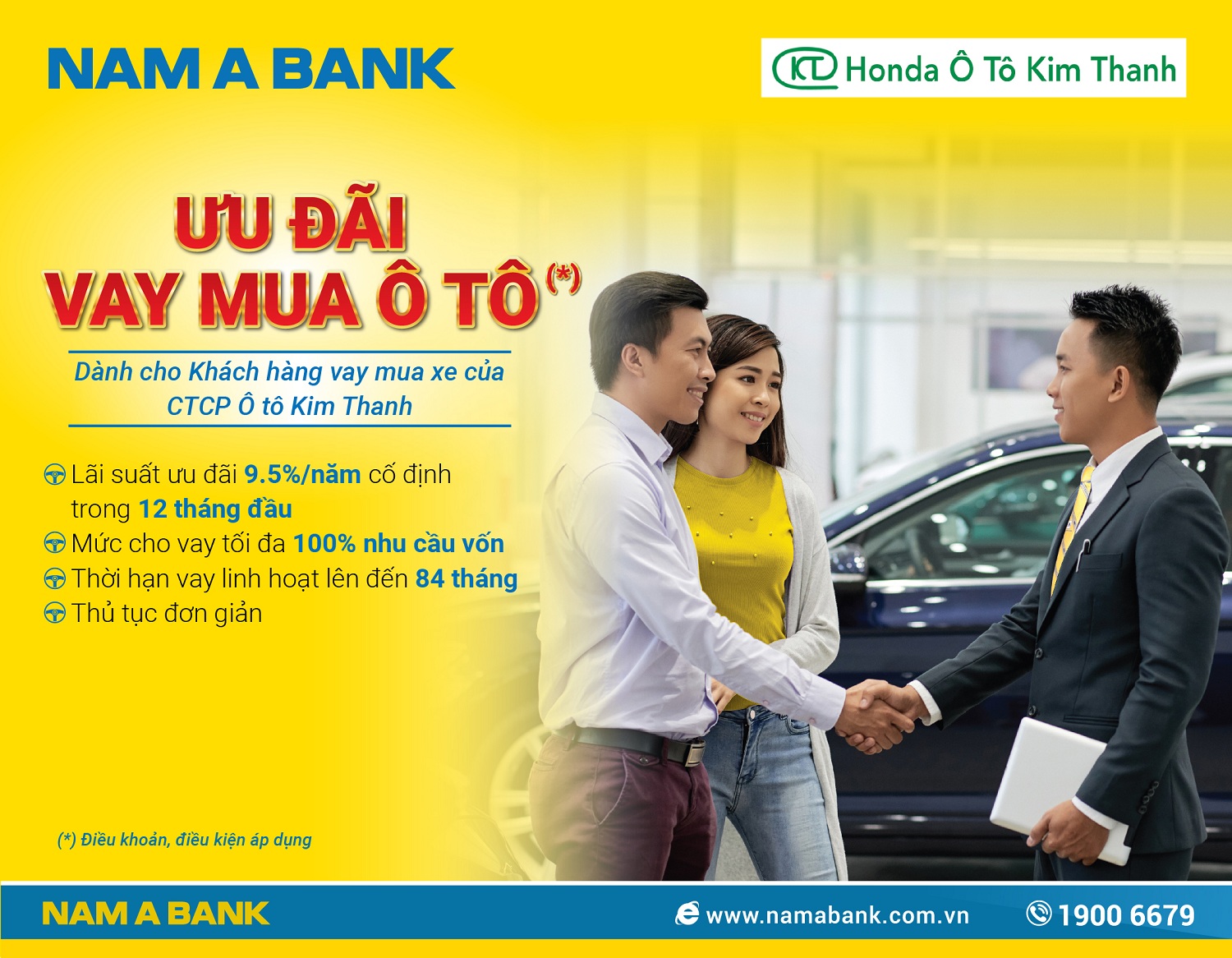 Thấu hiểu nhu cầu cũng như mong muốn đồng hành hỗ trợ về mặt tài chính cùng người dân nâng cao chất lượng cuộc sống, nhiều ngân hàng đã tung ra thị trường các gói vay mua xe ô tô ưu đãi. Mới đây nhất, Nam A Bank đã liên kết cùng Công ty Cổ phần Ô tô Kim Thanh triển khai chính sách vay dành cho các khách hàng mua xe ô tô hãng Honda với thời hạn cho vay linh hoạt lên đến 84 tháng, hạn mức cho vay lên đến 100% nhu cầu vốn, lãi suất hấp dẫn chỉ từ 9,5%/năm cố định trong 12 tháng đầu, tài sản đảm bảo chính xe mua hoặc tài sản khác của khách hàng. Đặc biệt, thủ tục đơn giản, giải ngân nhanh chóng giúp khách hàng rút ngắn thời gian sở hữu chiếc xe mơ ước. Chính sách này cũng áp dụng cho các khách hàng doanh nghiệp.