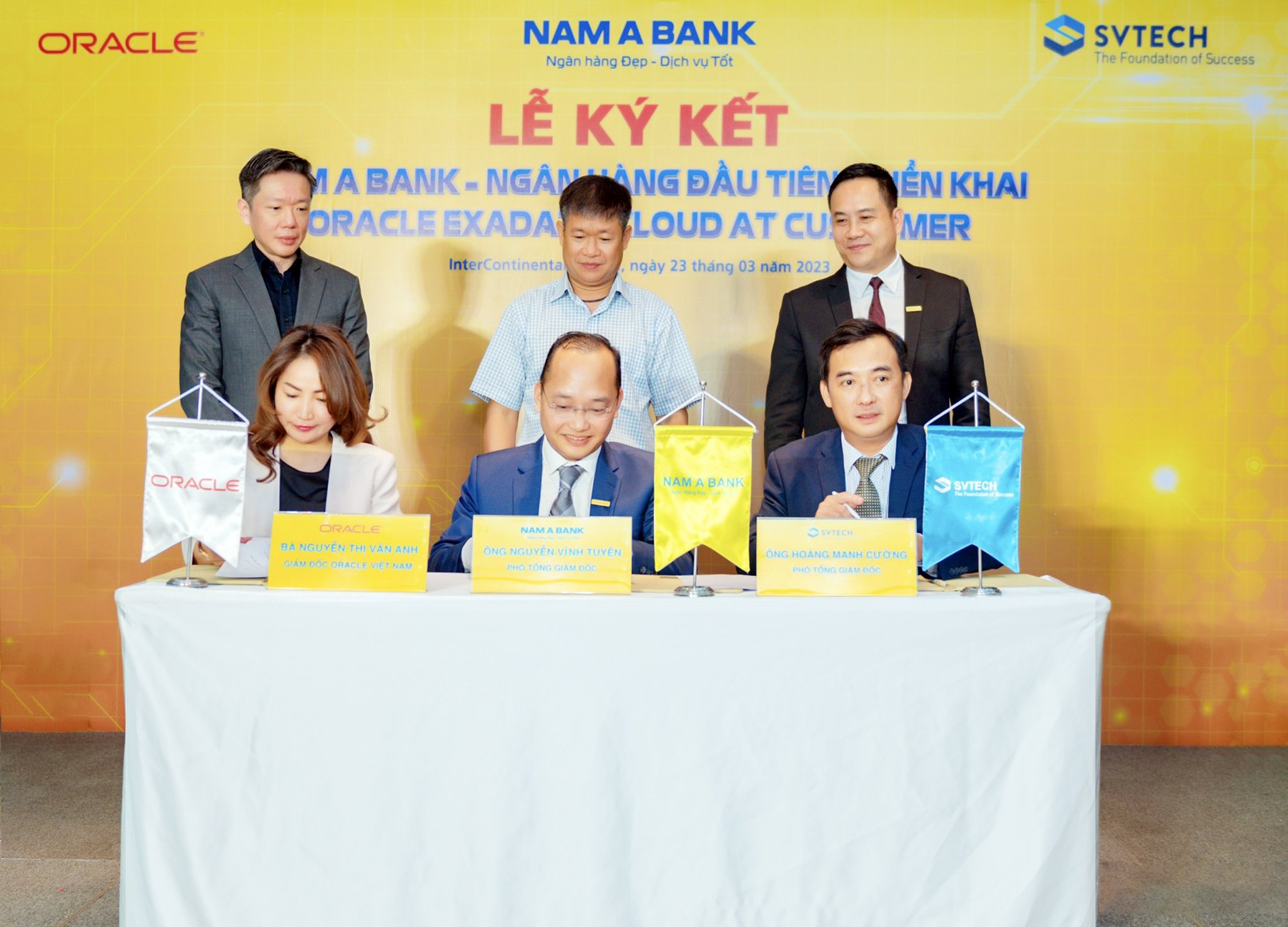 Sáng 23/03/2023, tại TP.HCM đã diễn ra Lễ ký kết hợp tác giữa Ngân hàng TMCP Nam Á (Nam A Bank) cùng Tập đoàn ORACLE và Công ty Cổ phần phát triển Công nghệ viễn thông tin học Sun Việt (SVTECH) về việc triển khai giải pháp Nền tảng điện toán đám mây Exadata đặt tại Khách hàng của Oracle (Oracle Exadata Cloud at Customer). Với sự kiện này, Nam A Bank chính thức trở thành ngân hàng đầu tiên tại Việt Nam triển khai giải pháp này.