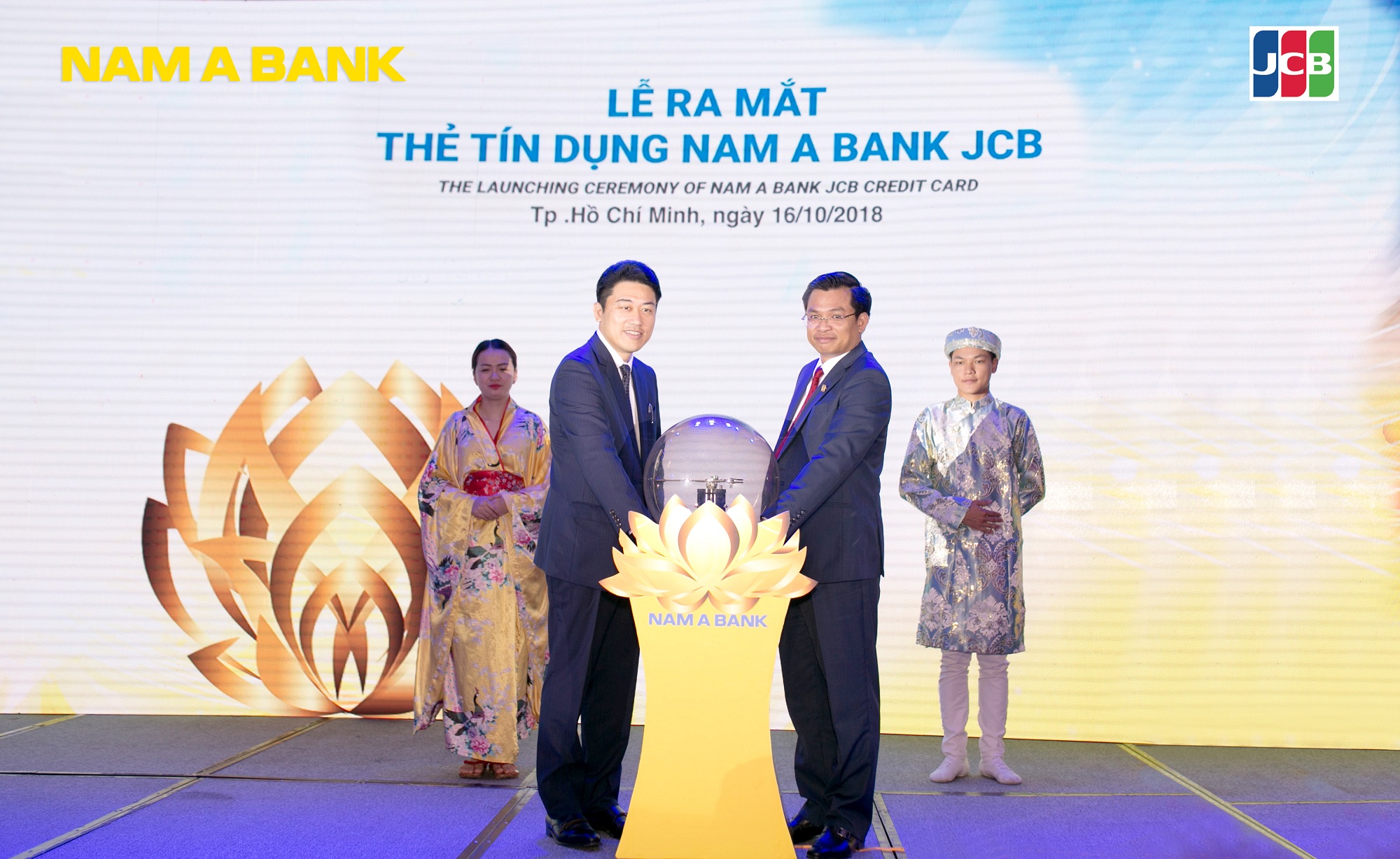 Ông Trần Ngọc Tâm – Tổng Giám đốc Nam A Bank và Ông Tomoaki Yamaguchi – Trưởng Đại diện Tổ chức thẻ quốc tế JCB cùng thực hiện nghi thức ra mắt thẻ tín dụng Nam A Bank JCB.