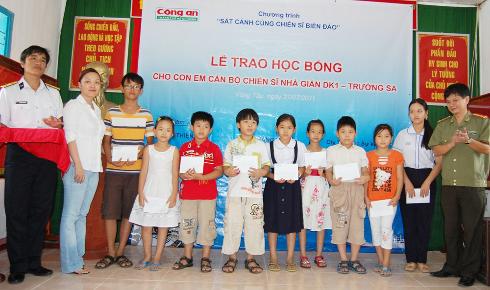 Tiếp nối chuỗi chương trình vì cộng đồng “Nhớ cội nguồn – Hướng tương lai”, sáng ngày 27/7/2011 tại Hội trường Tiểu đoàn DK1 thuộc Vùng 2 Hải quân - thành phố Vũng Tàu, Ngân hàng Nam Á phối hợp cùng Báo công an TPHCM và 2 đơn vị hảo tâm khác tổ chức trao 50 suất học bổng, mỗi suất trị giá 2 triệu đồng cho con em cán bộ chiến sĩ nhà giàn DK1.