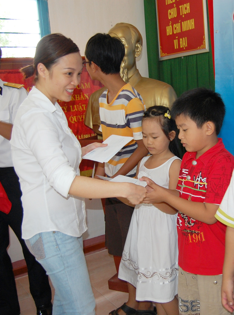Trực tiếp trao học bổng cho các cháu, Bà Tôn Nữ Hoài Vân – Phó trưởng phòng Marketing Nam A Bank không ngừng cổ vũ, khích lệ các cháu cố gắng trong học tập để tương lai trở thành những người có ích cho xã hội. Nam A Bank cũng hy vọng phần nào được tiếp thêm sức mạnh cho các cán bộ chiến sĩ DK1 đang ngày đêm đứng trước đầu sóng, ngọn gió làm nhiệm vụ bảo vệ Tổ quốc.