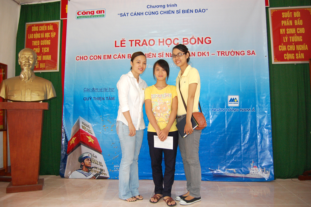 Tiếp nối chuỗi chương trình vì cộng đồng “Nhớ cội nguồn – Hướng tương lai”, sáng ngày 27/7/2011 tại Hội trường Tiểu đoàn DK1 thuộc Vùng 2 Hải quân - thành phố Vũng Tàu, Ngân hàng Nam Á phối hợp cùng Báo công an TPHCM và 2 đơn vị hảo tâm khác tổ chức trao 50 suất học bổng, mỗi suất trị giá 2 triệu đồng cho con em cán bộ chiến sĩ nhà giàn DK1.