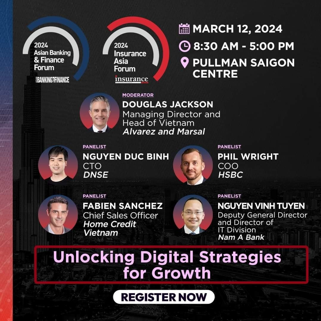 Tại phiên thảo luận “Unlocking Digital Strategies for Growth” với sự tham dự của các diễn giả đến từ các tổ chức tài chính uy tín như HSBC, DNSE, Nam A Bank và Home Credit đã đem đến những khía cạnh thú vị của việc chuyển đổi số tại Việt Nam, cũng như điểm qua những khó khăn, thách thức trong hành trình chuyển đổi số của các công ty, đồng thời chia sẻ những cơ hội, dự đoán các xu hướng phát triển trong tương lai của công nghệ số tại Việt Nam.