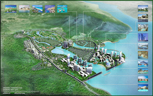 Diamond Bay City là một quần thể du lịch, nghỉ dưỡng - giải trí quy mô đẳng cấp quốc tế có tổng vốn đầu tư dự kiến 4 tỷ USD và sẽ hoàn thành trong 7-10 năm tới. Đây là nơi hội tụ tinh hoa các công trình kiến trúc độc đáo danh tiếng thế giới bao gồm hơn 15 resorts, khách sạn cao cấp từ 4-7 sao với khoảng 10.000 phòng khách sạn, resorts và 4000 biệt thự. Các toà kiến trúc của Diamond Bay City được lấy ý tưởng thiết kế theo mô hình Palm island (Dubai), Resort World - Sentosa ở Singapore, Genting resort (Malaysia), Toà nhà Etihad (Dubai), toà nhà khách sạn con tàu Titanic, toà nhà máy bay Concord hotel, Palazzo resort (Pháp) và các biệt thự trên biển Maldives, cùng đầy đủ các dịch vụ tiện ích gồm Bến du thuyền, các khu thương mại mua sắm cao cấp, khu vui chơi giải trí đa dạng, bệnh viện, Trường học quốc tế, và dự kiến sẽ xây dựng casino khi được chính phủ cho phép…