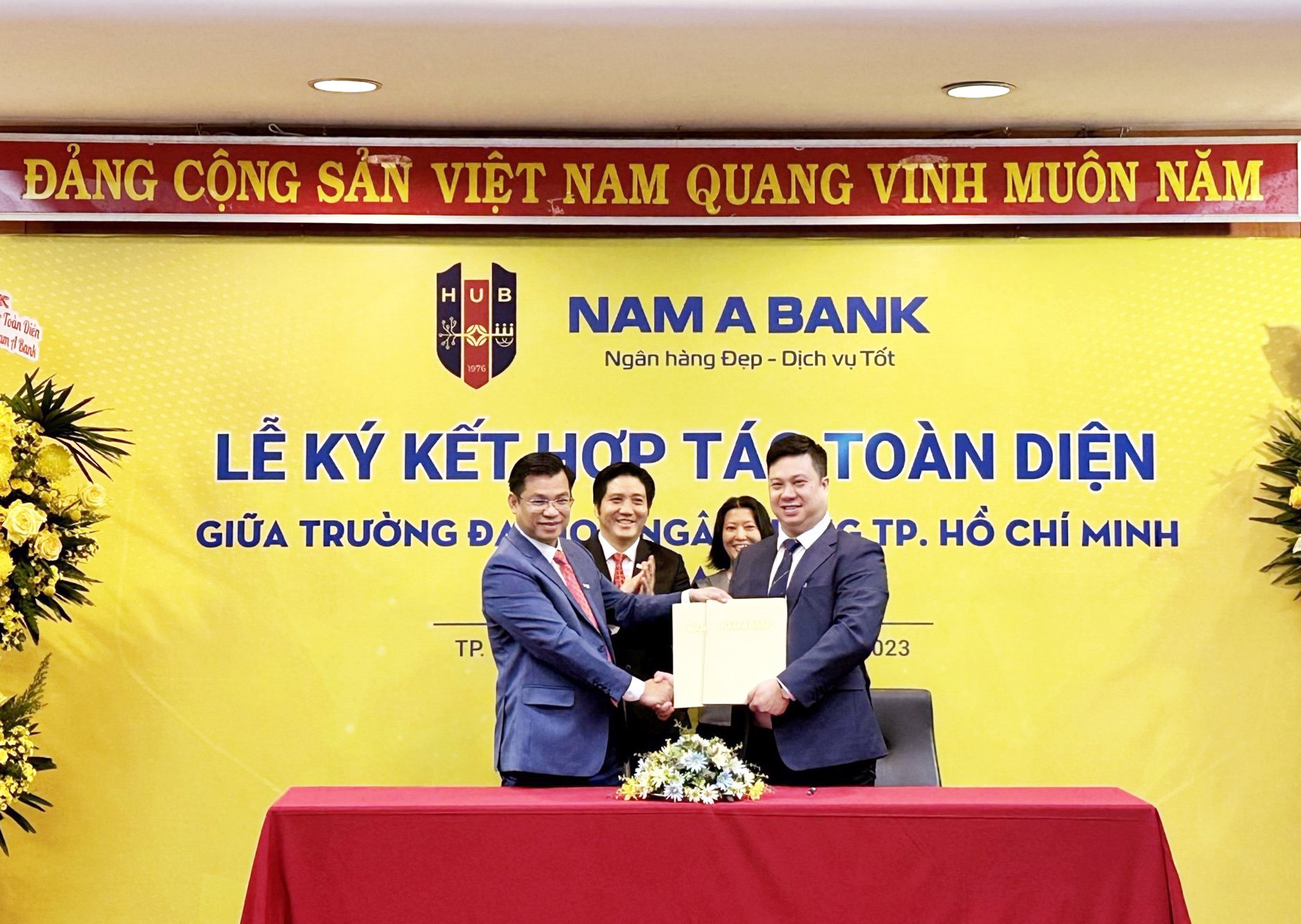 Được biết, ĐH Ngân hàng TP.HCM là một trong những cái nôi đào tạo nguồn nhân lực chất lượng cao ngành tài chính – ngân hàng ở Việt Nam. Từ nhiều năm nay, Nam A Bank và trường ĐH này đã có mối quan hệ hợp tác sâu rộng, đồng hành trong nhiều hoạt động như xây dựng phòng truyền thống và tưởng niệm Chủ tịch Hồ Chí Minh, phòng Lab tại trường, tài trợ quỹ học bổng, tổ chức các hội thảo khoa học và các hoạt động đào tạo khác…