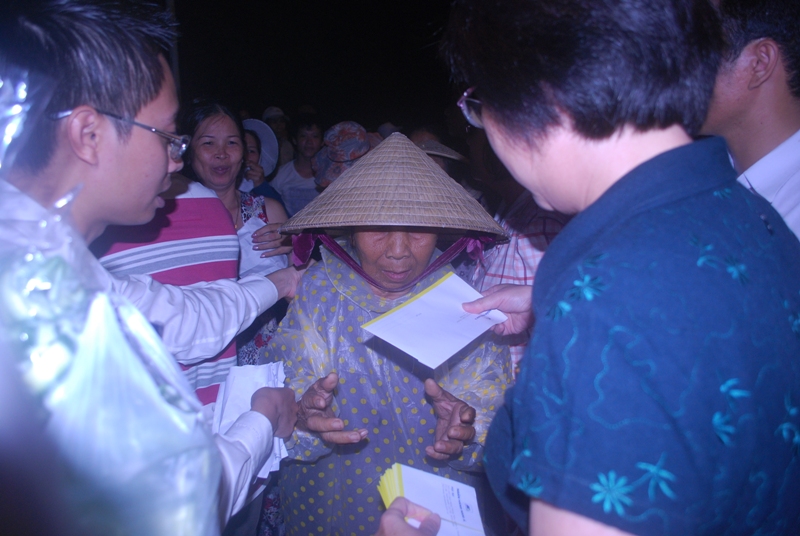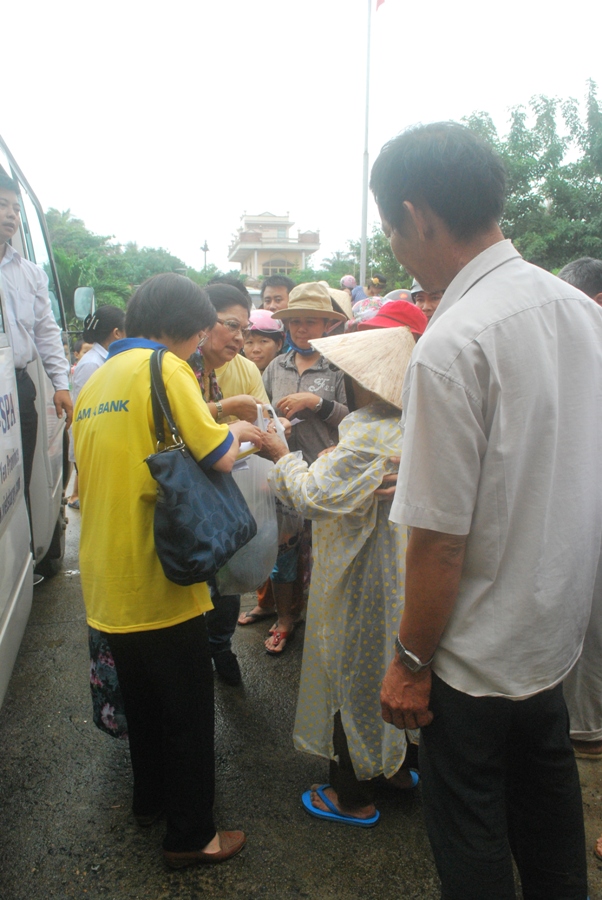 Sau 2 ngày “bom nước” dội từ thượng nguồn sông Côn về khiến hàng vạn nhà dân chới với trong biển nước thì Bình Định vẫn tiếp tục hứng những đợt mưa lớn. Khi Đoàn phát quà cho bà con tại xã Hoài Ân tỉnh Bình Định, những giọt nước mắt lăn dài trên khuôn mặt người dân lam lũ nơi đây khiến cho cả Đoàn từ thiện chúng tôi như nghẹn lại. Và hơn lúc nào hết, chúng tôi thấy những món quà tuy nhỏ nhưng đối với bà con nơi đây lại thật ý nghĩa.