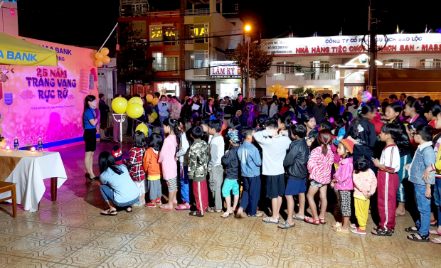 Mặc dù trời mưa nhưng rất đông các em thiếu nhi đến hòa chung niềm vui trung thu tại Nam A Bank Lâm Đồng.