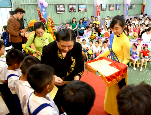 Bà Tòng Thị Phóng - Phó Chủ tịch Thường trực Quốc Hội tặng quà trung thu đến trẻ em làng SOS Bến Tre trong Đêm Hội Trăng Rằm - Nam A Bank Bến Tre.