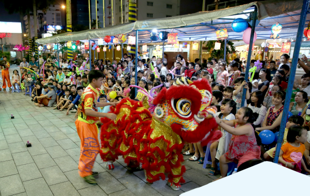 Chương trình “Đêm hội trăng rằm 2017” với chủ đề “25 năm – Trăng vàng rực rỡ” đã mang đến cho các em không gian ấm áp và tiếng cười hạnh phúc. Tại đây, các em được tham gia nhiều hoạt động vui chơi đa dạng cùng những tiết mục truyền thống như múa lân, biểu diễn văn nghệ thiếu nhi, gặp gỡ chị Hằng, chú Cuội và phá cỗ trong niềm vui hân hoan.