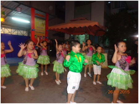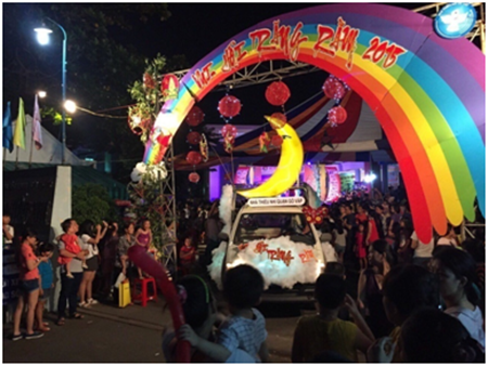 Các em thiếu nhi tại khu vực TPHCM vui mừng đón trung thu trong tiết mục múa lân mở màn
