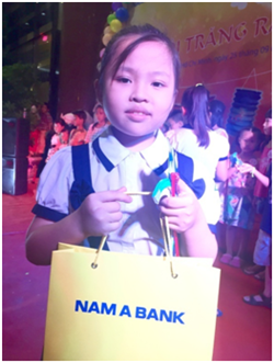 Tại đó, các em đã có dịp gặp gỡ Chị Hằng Nga, Chú Cuội, được lắng nghe những bài hát truyền thống của đêm rằm tháng Tám và tham gia đóng góp những tiết mục chương trình vui chơi, văn nghệ do chính các em biểu diễn. Đặc biệt, các em còn được nhận những phần quà trung thu ý nghĩa từ Nam A Bank như tập vở, bánh trung thu và chiếc đèn lồng xinh xắn.
