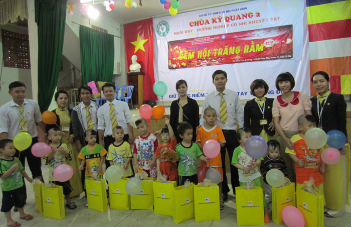 Hiểu được những hoàn cảnh ấy, Đoàn Thanh Niên NAM A BANK đã tổ chức vui chơi và trao tặng 150 phần quà cho các em bị dị tật bẩm sinh, mồ côi cha mẹ tại Cơ sở từ thiện xã hội Phật giáo Chùa Kỳ Quang II vào ngày 28/09/2012 (nhằm ngày 13/8 AL). Những phần quà thể hiện tình cảm, sự đùm bọc và giúp đỡ cho những trẻ em có hoàn cảnh khó khăn của Ban lãnh đạo và toàn thể CBNV Ngân hàng Nam Á.