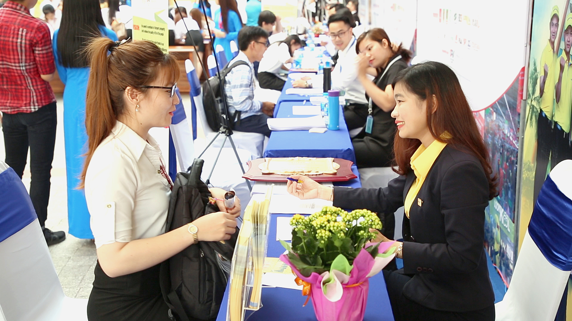 Các bạn sinh viên được hướng dẫn, tư vấn nhiệt tình từ các chuyên gia nhân sự của Nam A Bank.