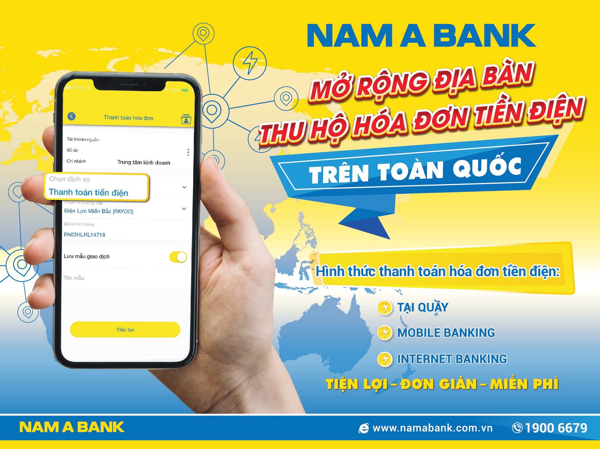 Nhằm gia tăng tiện ích, đáp ứng tối đa nhu cầu của khách hàng, mới đây, Nam A Bank tiếp tục mở rộng địa bàn thu hộ hóa đơn tiền điện trên toàn quốc. Đặc biệt, khách hàng còn được miễn phí giao dịch khi sử dụng dịch vụ này.