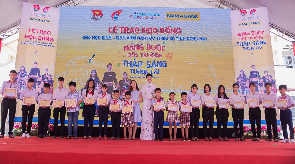 Ngày 4/7 vừa qua, gần 150 suất học bổng đã được trao cho học sinh, sinh viên dân tộc thiểu số tỉnh Đồng Nai trong chương trình “Nâng Bước Đến Trường – Thắp Sáng Tương Lai”. Đây là hành trình ý nghĩa do Nam A Bank phối hợp cùng Quỹ học bổng Vừ A Dính và Tổ chức VinaCapital Foundation thực hiện. Tham dự chương trình trao học bổng có Bà Trương Mỹ Hoa – Nguyên Phó Chủ tịch Nước, Chủ tịch Quỹ Học bổng Vừ A Dính, Ông Trần Ngọc Tâm – Tổng Giám đốc Nam A Bank cùng Đại diện Qũy Vinacapital Foundation và Đại diện tỉnh Đồng Nai.