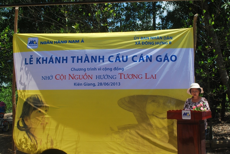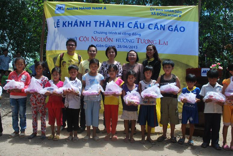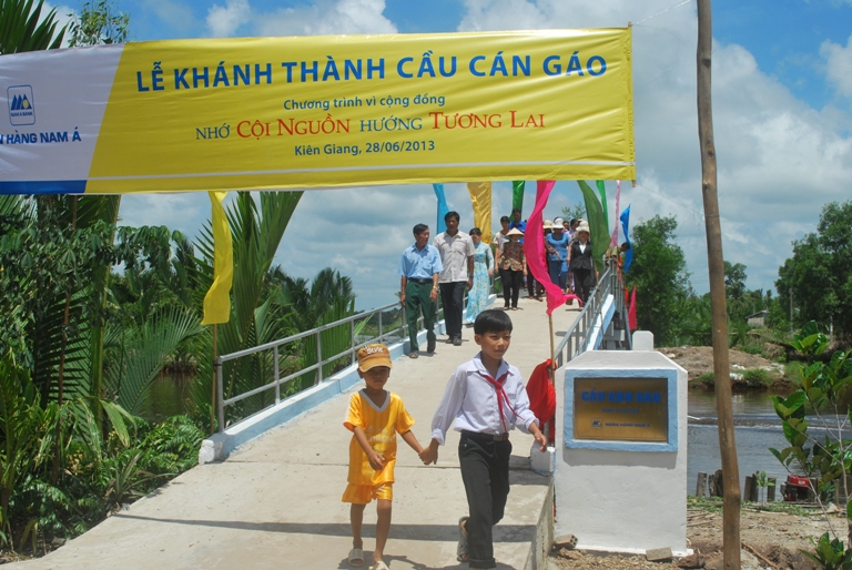 Sáng ngày 28/06/2013, Ngân hàng TMCP Nam Á (NAM A BANK) cùng Hội liên hiệp phụ nữ tỉnh Kiên Giang và đại diện công ty du lịch Hòa Bình đã chính thức cắt băng khánh thành cây cầu Cán Gáo thuộc xã Đông Hưng B, huyện An Minh, tỉnh Kiên Giang. Đây là cây cầu được xây dựng từ Quỹ từ thiện “Nhớ cội nguồn – Hướng tương lai” do Ngân hàng Nam Á phát động.