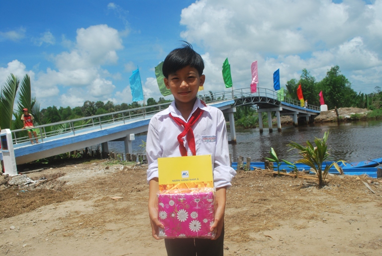 Cũng nhân lễ khánh thành cầu lần này, Ngân hàng Nam Á đã phối hợp với công ty du lịch Hòa Bình trao 20 phần quà cho các hộ nghèo, 100 phần quà dành cho các em học sinh nghèo vượt khó học giỏi.