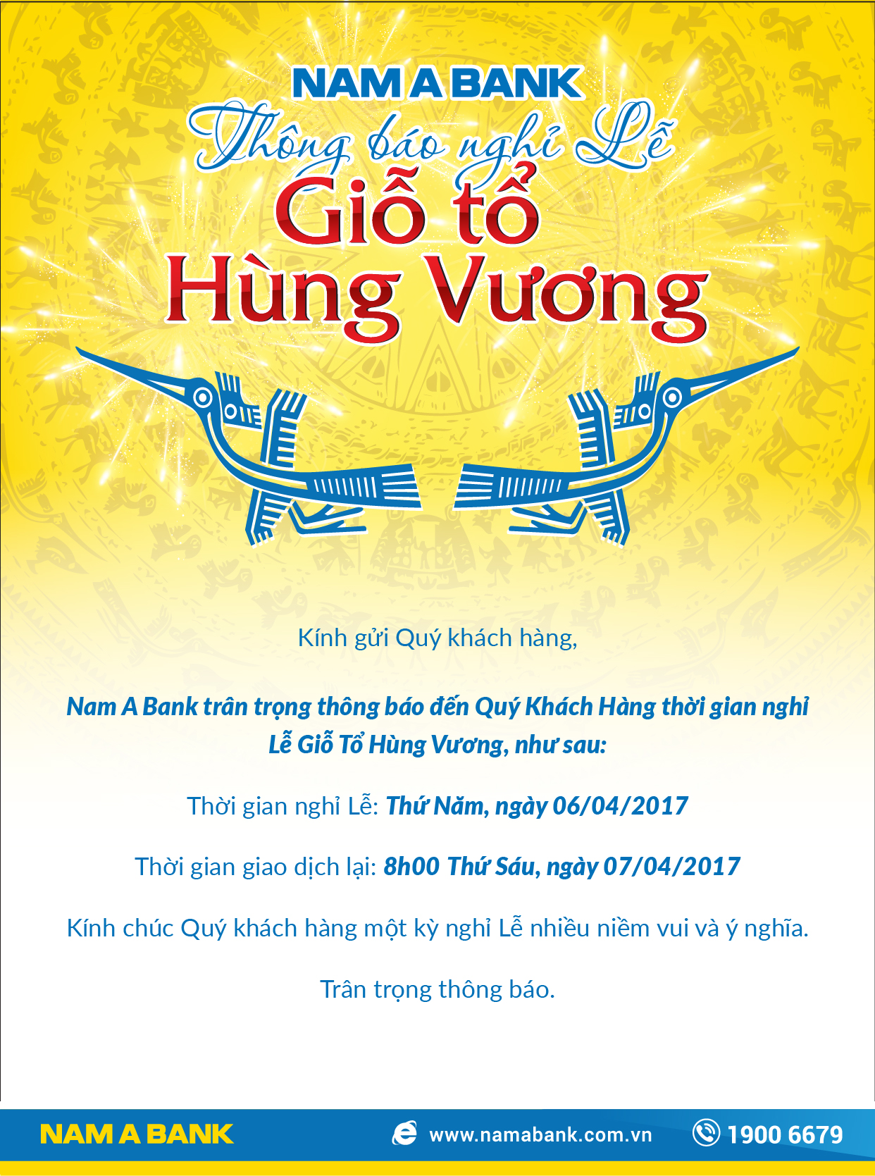 Nam A Bank thông báo nghỉ Lễ Giỗ tổ Hùng Vương