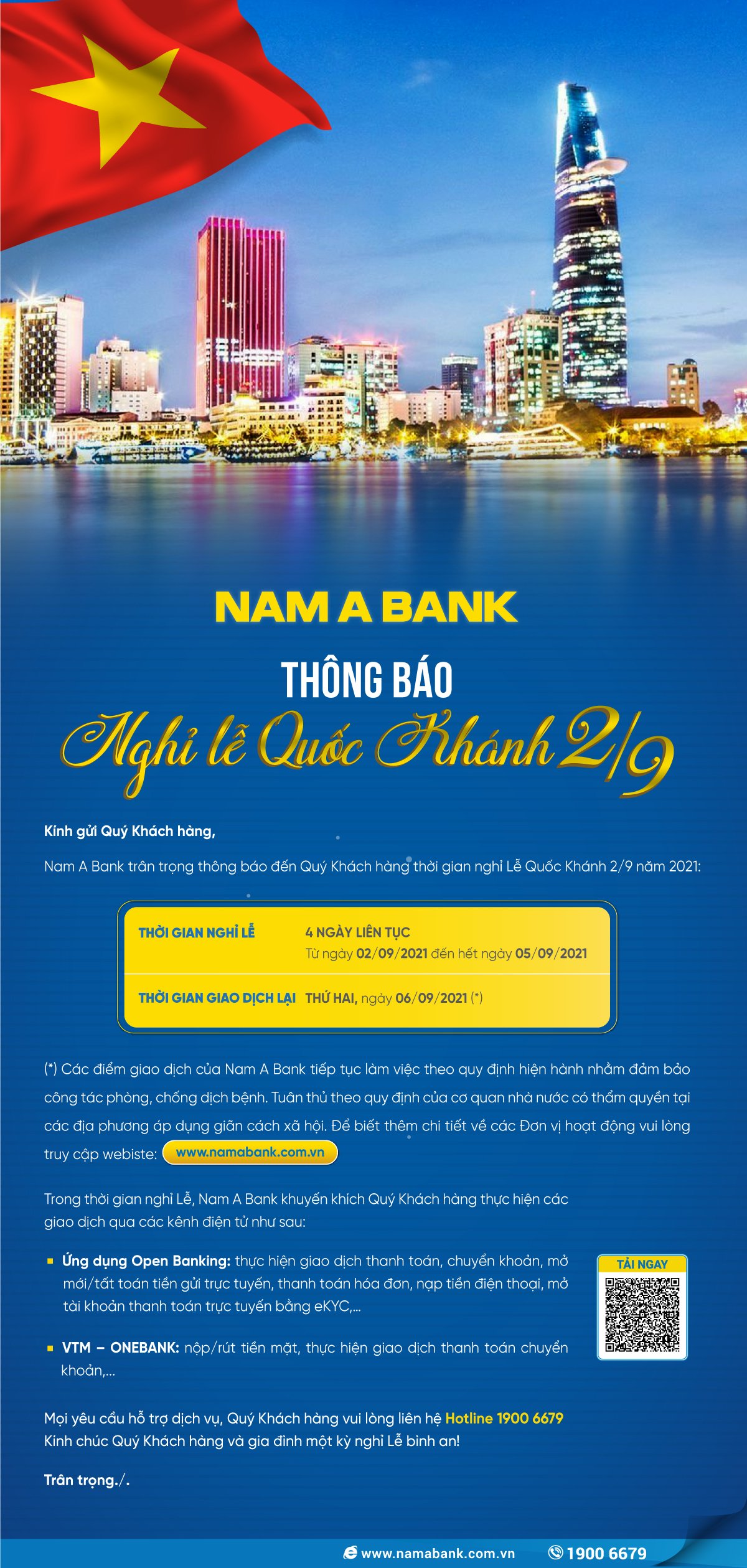 NAM A BANK THÔNG BÁO NGHỈ LỄ QUỐC KHÁNH 2/9